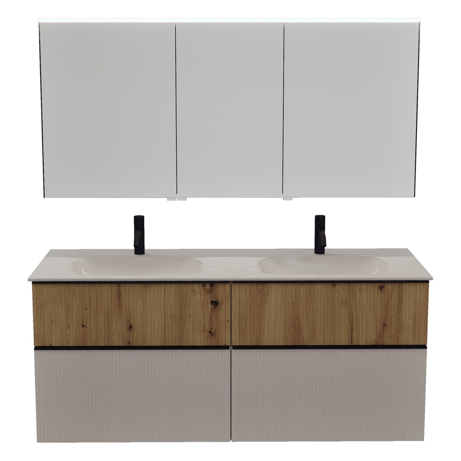 burgbad Fiumo 2.0 Badmöbelset 142 cm mit Waschtisch mit Unterschrank mit Griff G0200 und Spiegelschrank