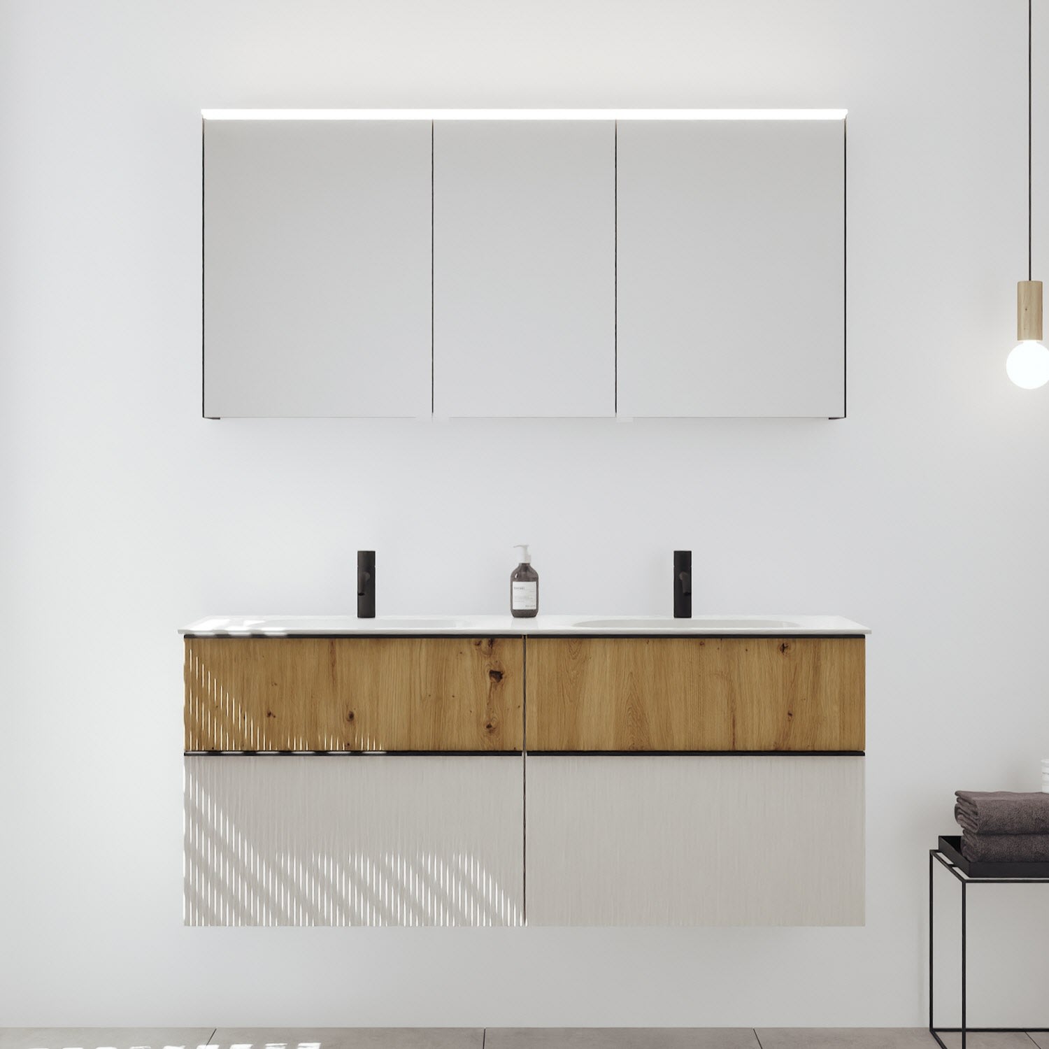- Spiegelschrank, Waschtischunterschrank, Waschtisch,burgbad cleanFlow, Befestigung außer Stockschrauben