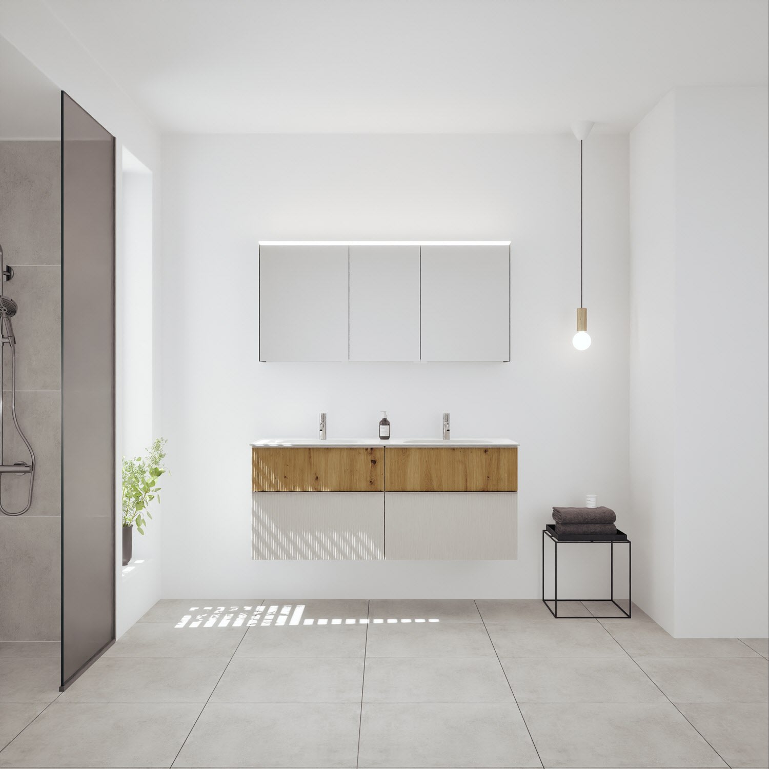 burgbad Fiumo 2.0 Badmöbelset 142 cm mit Waschtisch mit Unterschrank mit Griff G0146 und Spiegelschrank
