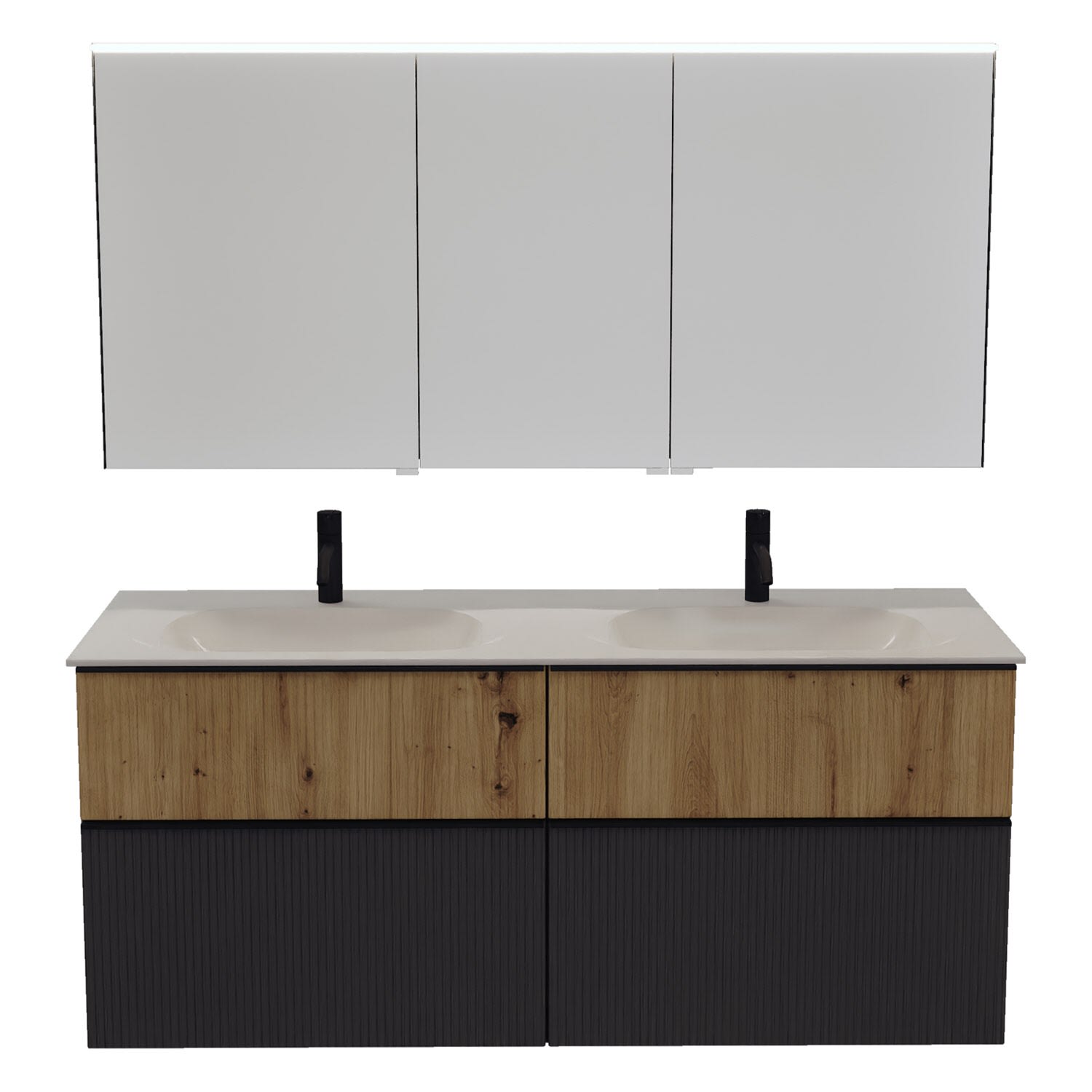 burgbad Fiumo 2.0 Badmöbelset 142 cm mit Waschtisch mit Unterschrank mit Griff G0200 und Spiegelschrank