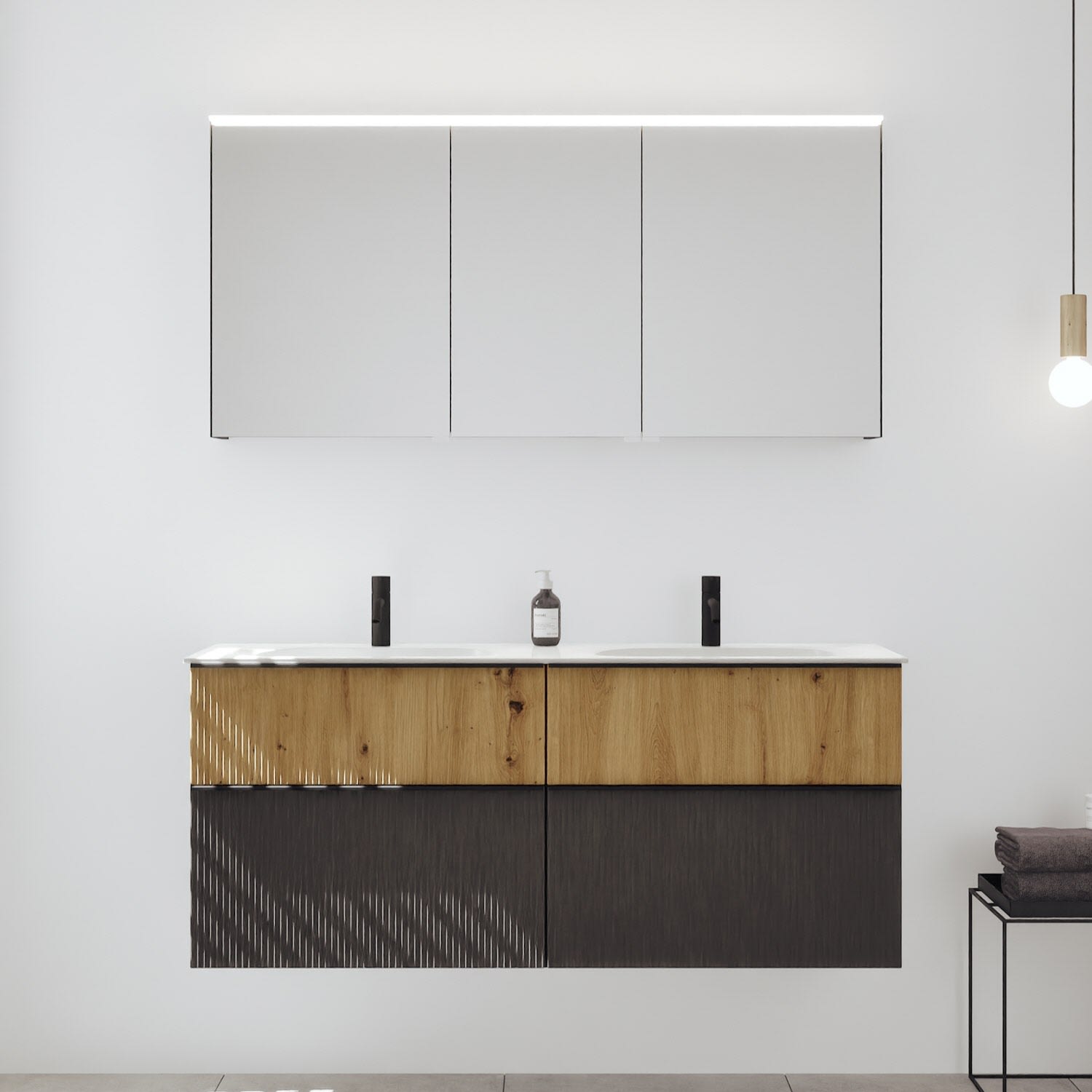 - Spiegelschrank, Waschtischunterschrank, Waschtisch,burgbad cleanFlow, Befestigung außer Stockschrauben