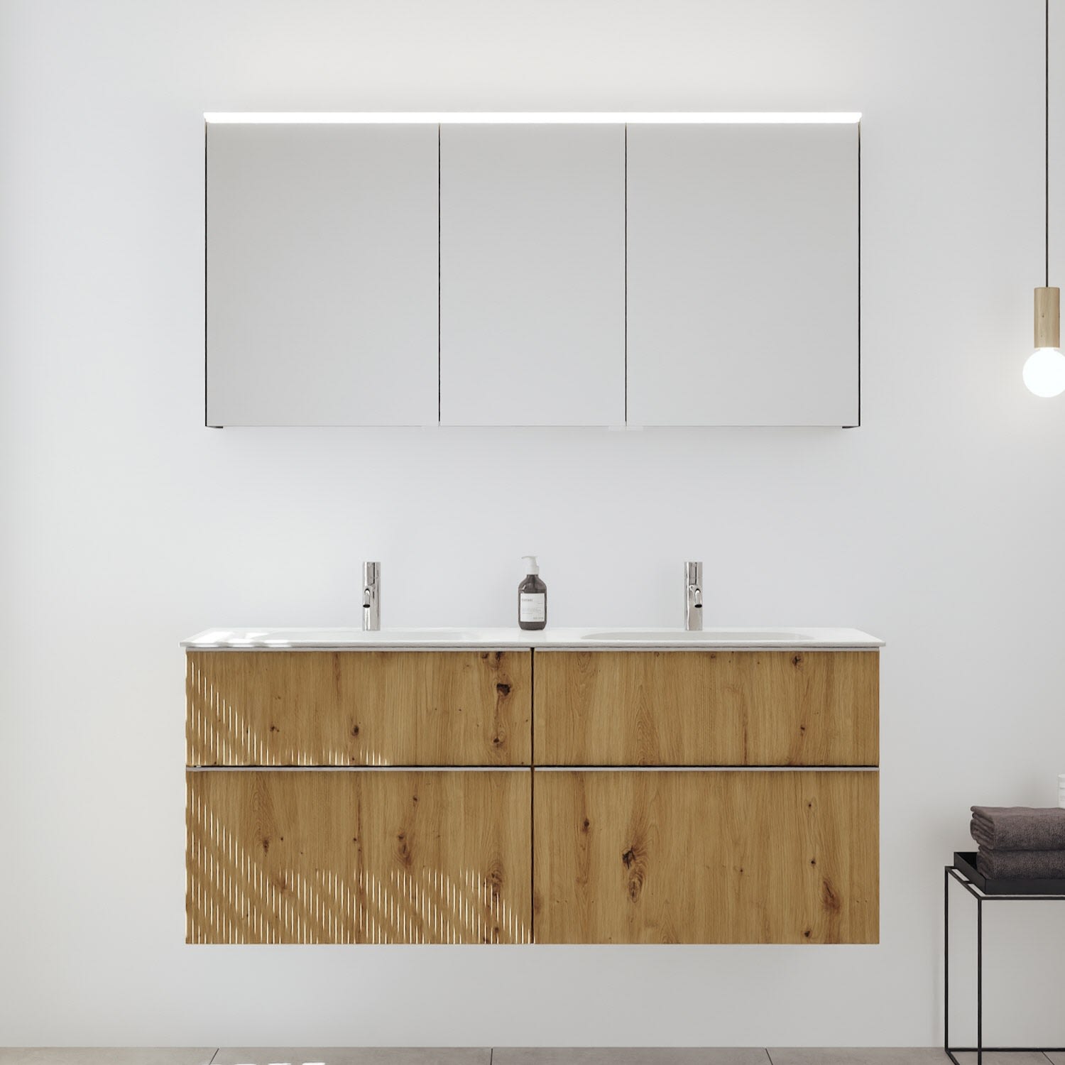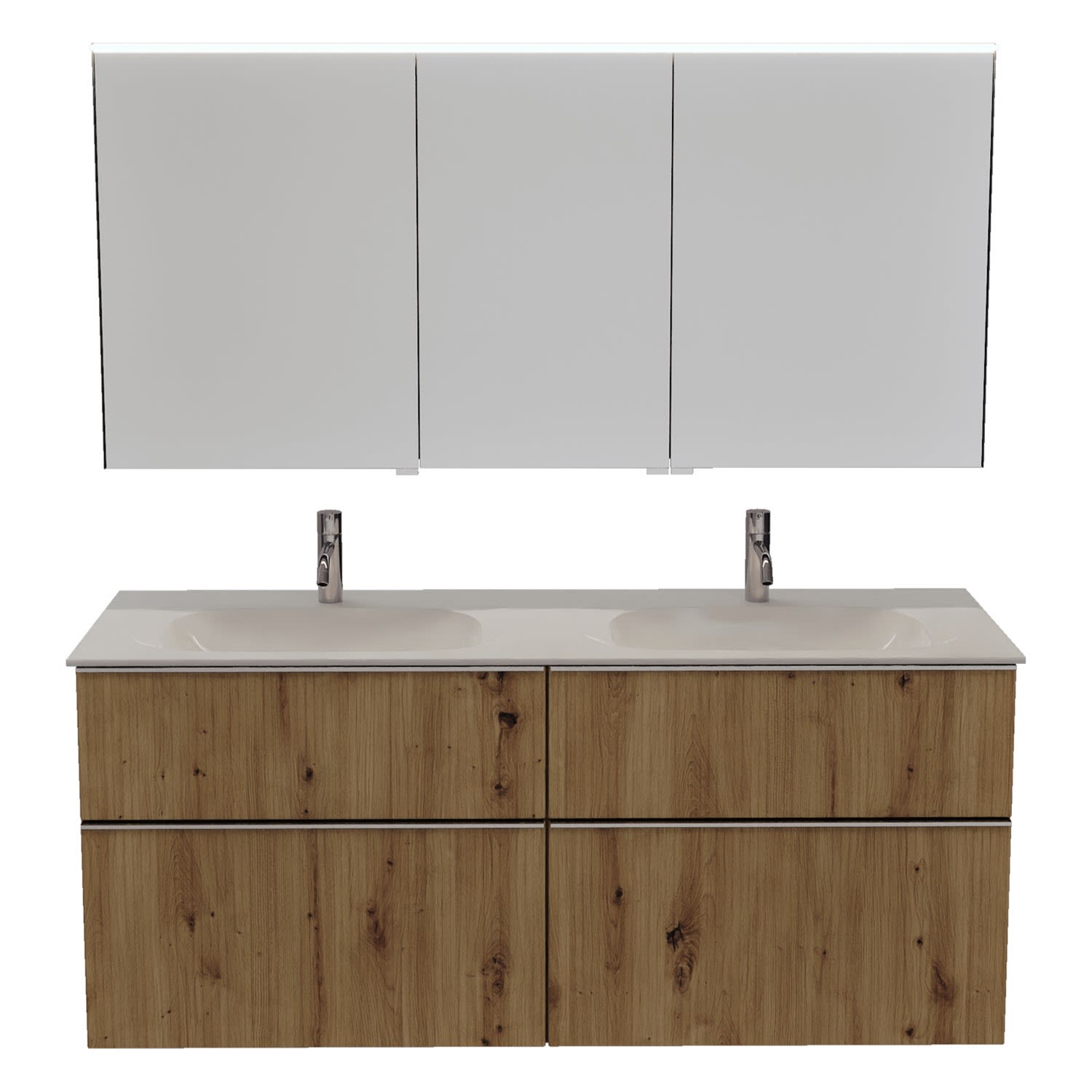 burgbad Fiumo 2.0 Badmöbelset 142 cm mit Waschtisch mit Unterschrank mit Griff G0146 und Spiegelschrank