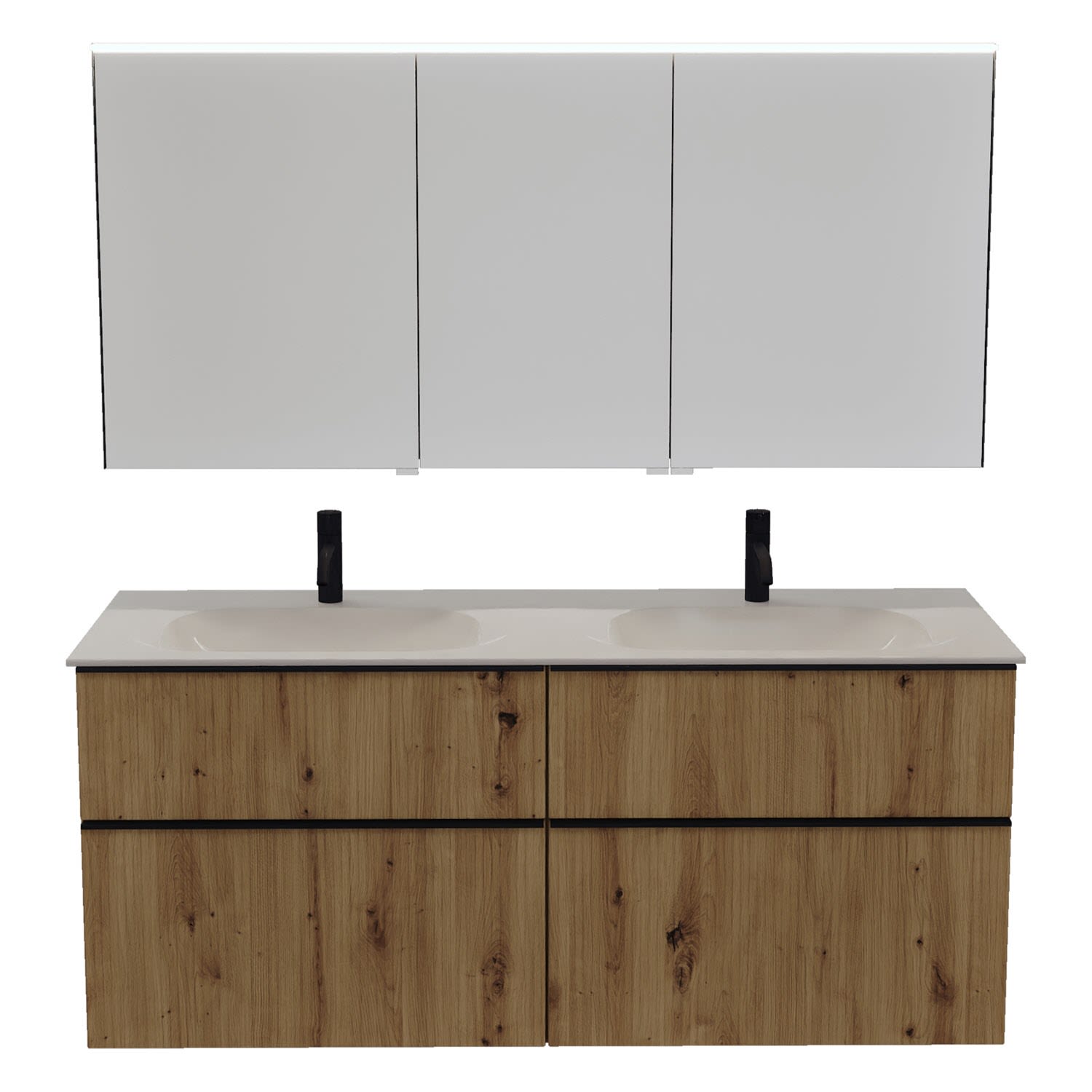 burgbad Fiumo 2.0 Badmöbelset 142 cm mit Waschtisch mit Unterschrank mit Griff G0200 und Spiegelschrank