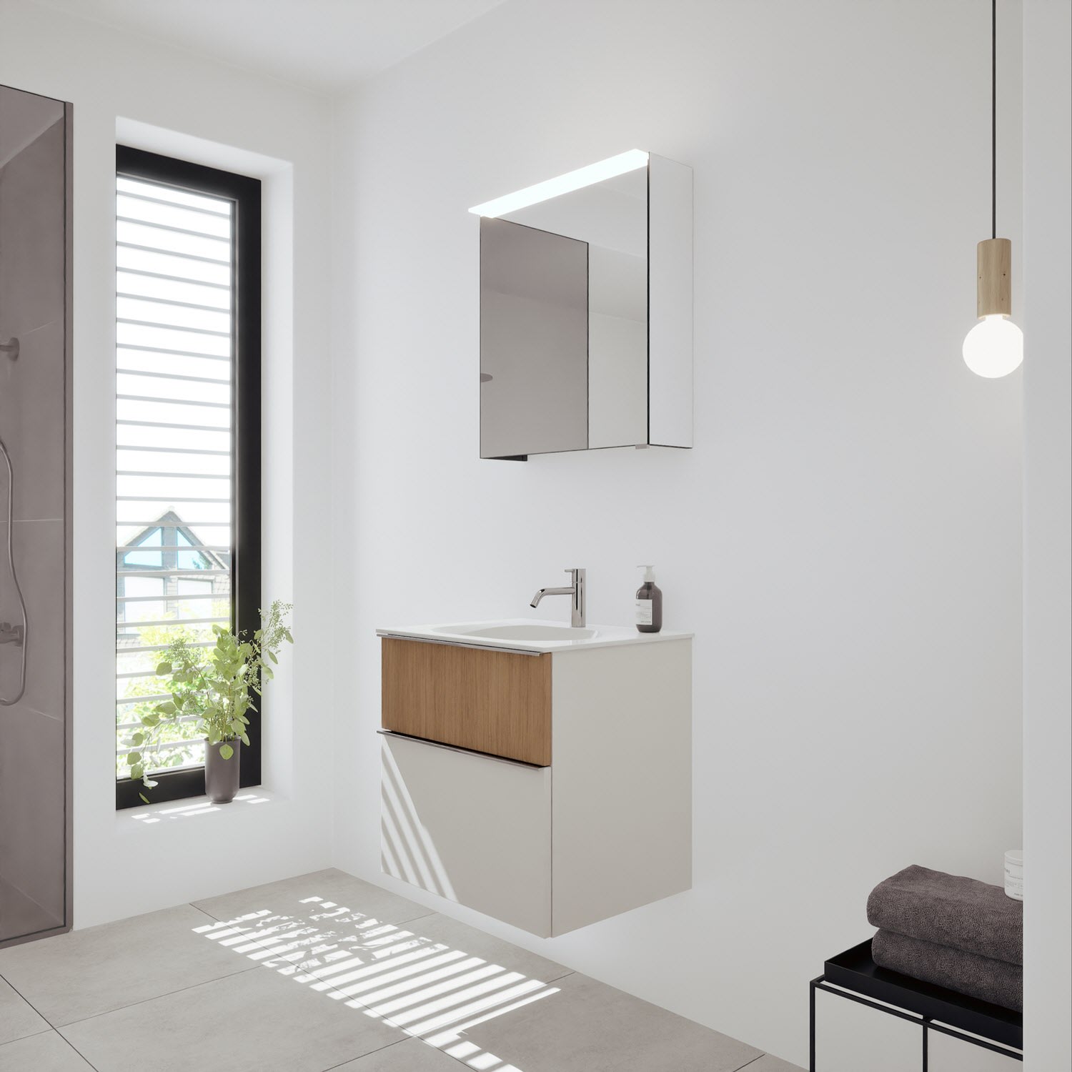 burgbad Fiumo 2.0 Badmöbelset 62 cm mit Waschtisch mit Unterschrank mit Griff G0146 und Spiegelschrank