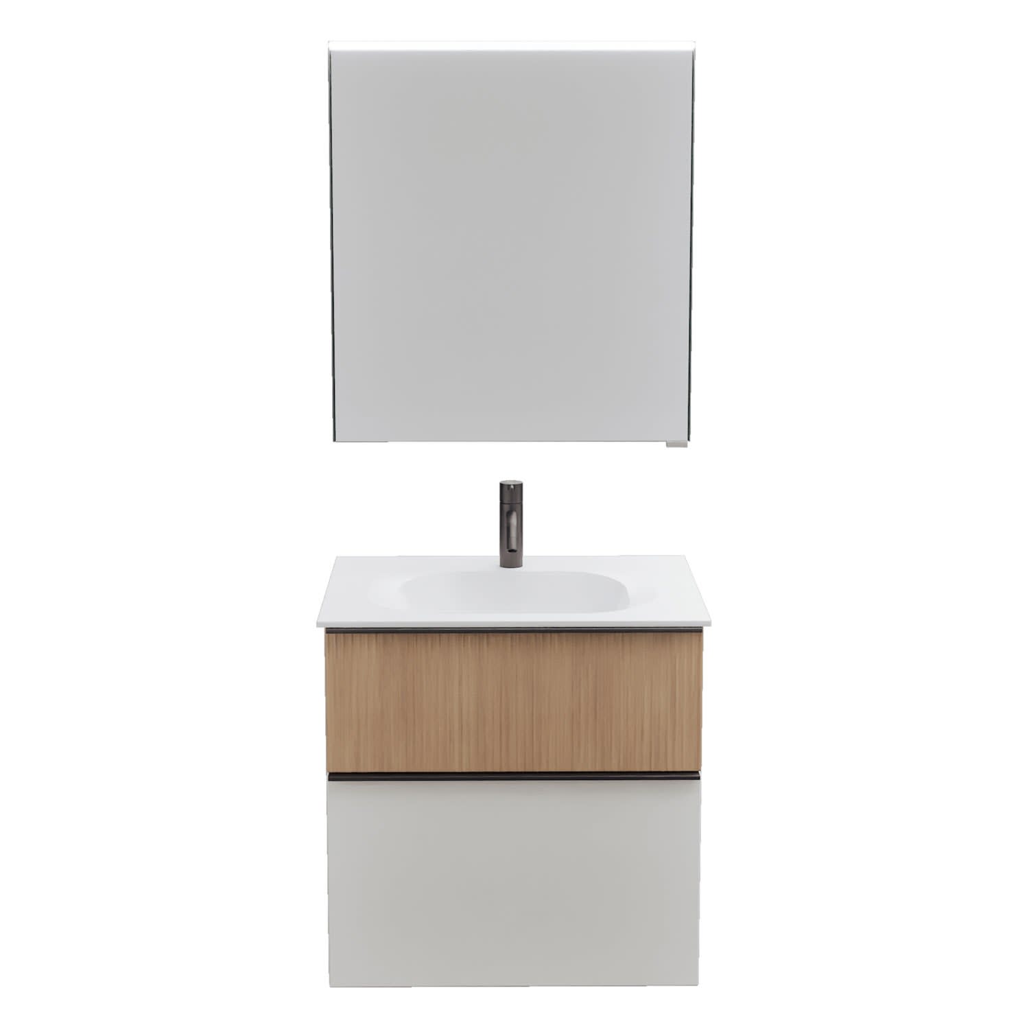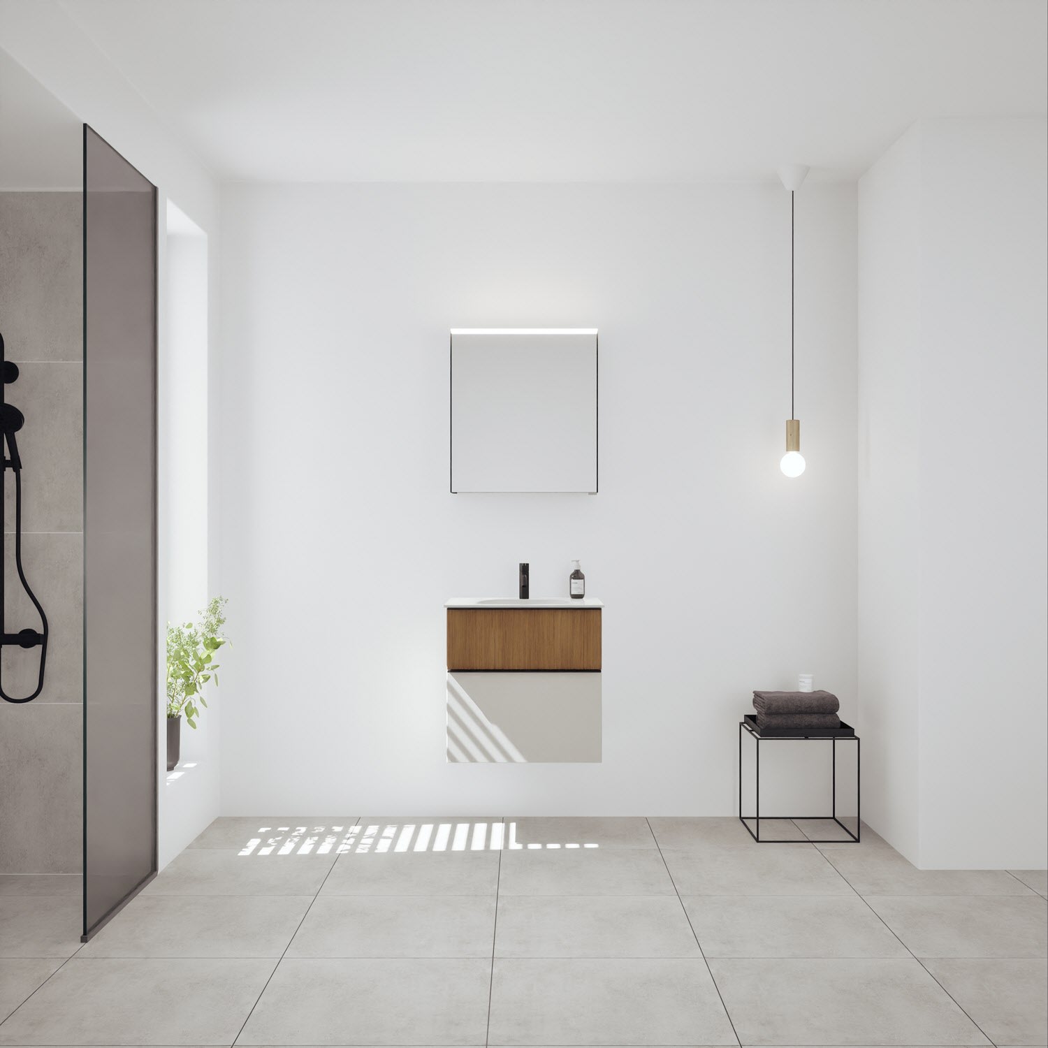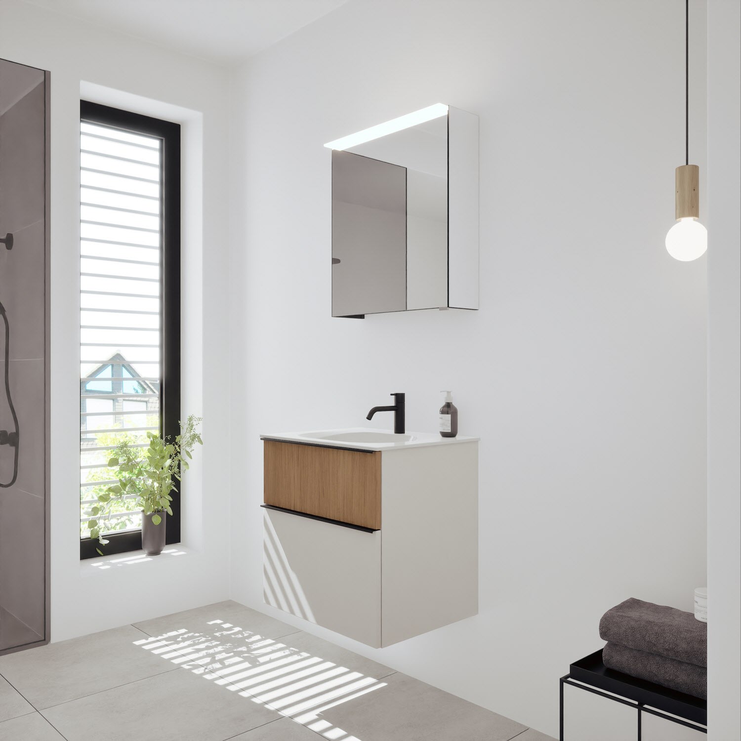 burgbad Fiumo 2.0 Badmöbelset 62 cm mit Waschtisch mit Unterschrank mit Griff G0200 und Spiegelschrank