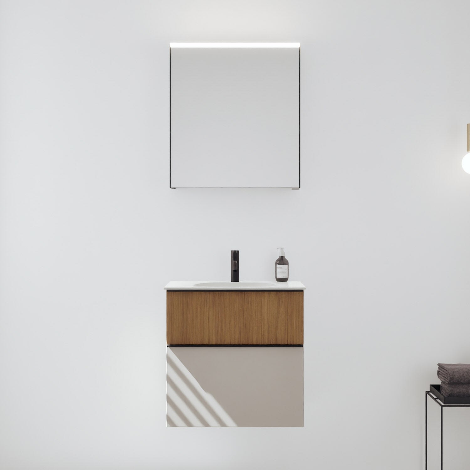 burgbad Fiumo 2.0 Badmöbelset 62 cm mit Waschtisch mit Unterschrank mit Griff G0200 und Spiegelschrank