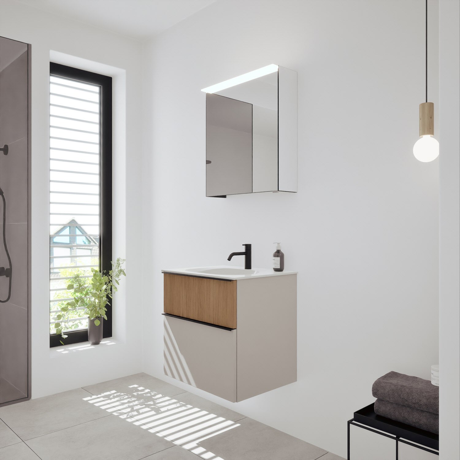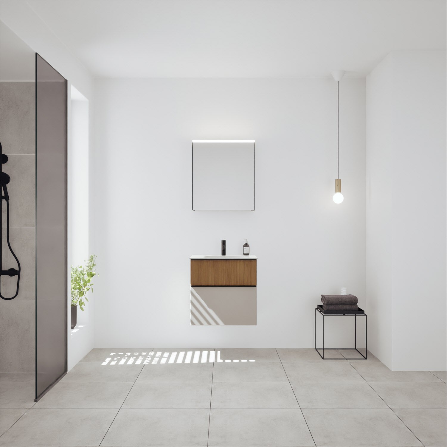 - Spiegelschrank, Waschtischunterschrank, Waschtisch, burgbad cleanFlow, Befestigung außer Stockschrauben