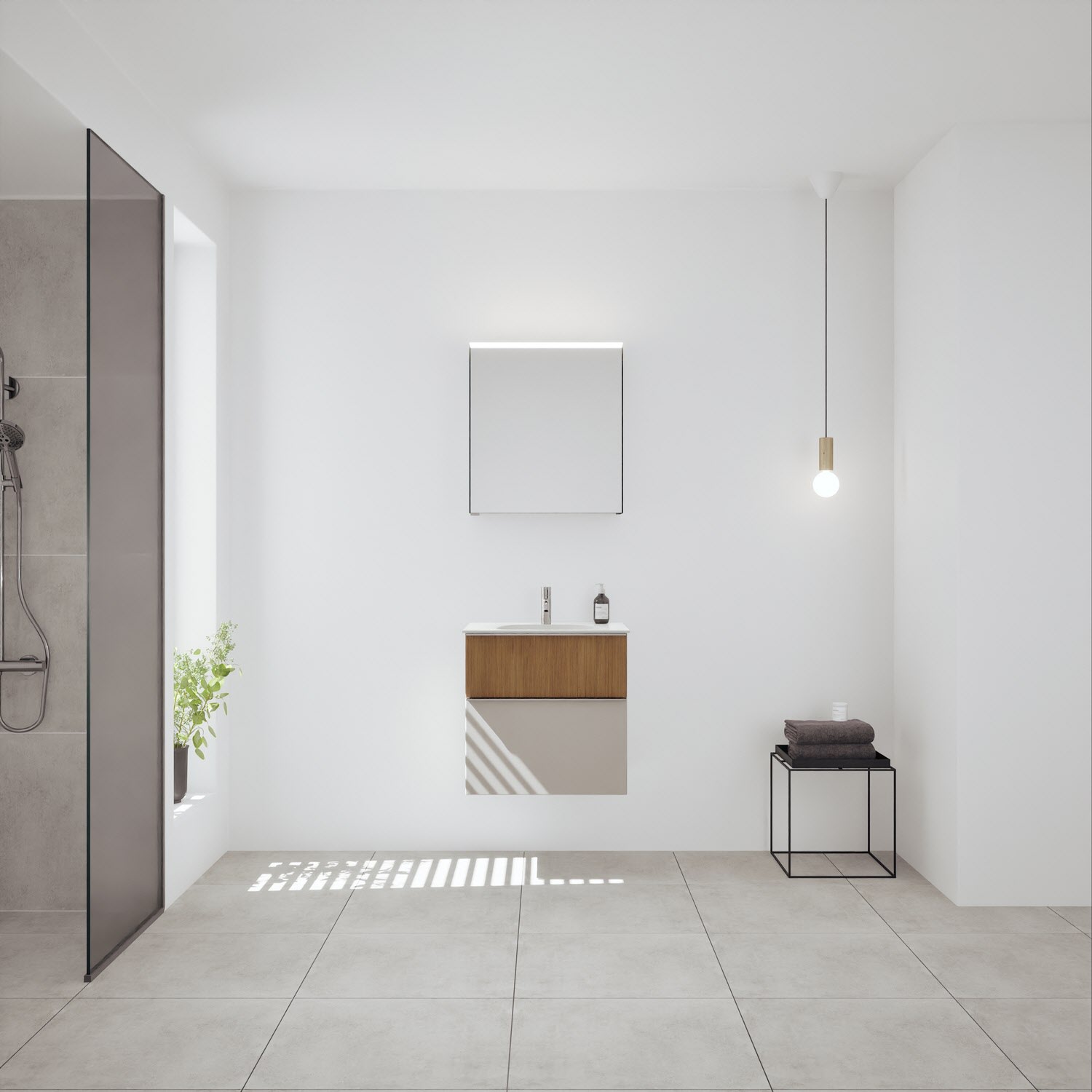 burgbad Fiumo 2.0 Badmöbelset 62 cm mit Waschtisch mit Unterschrank mit Griff G0146 und Spiegelschrank