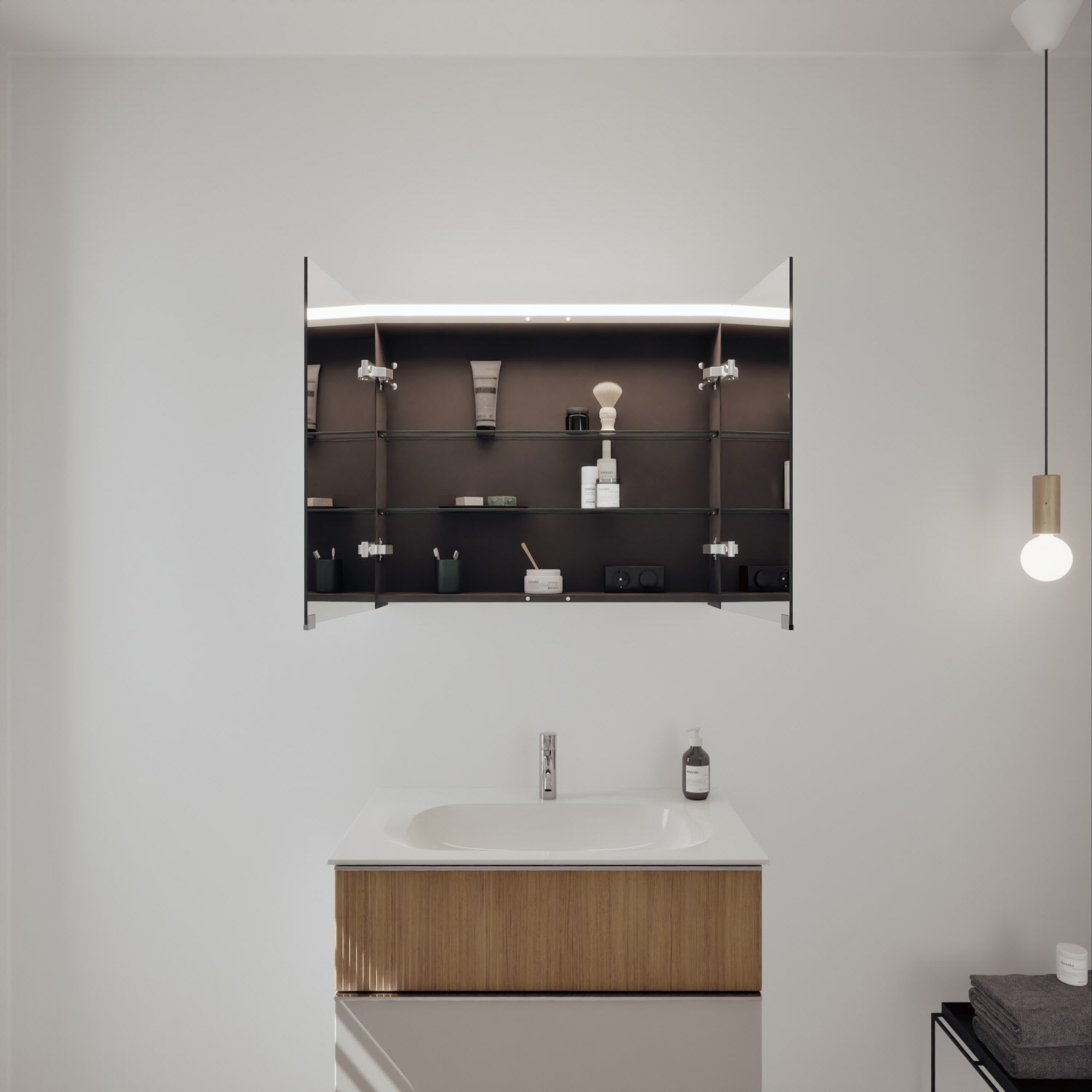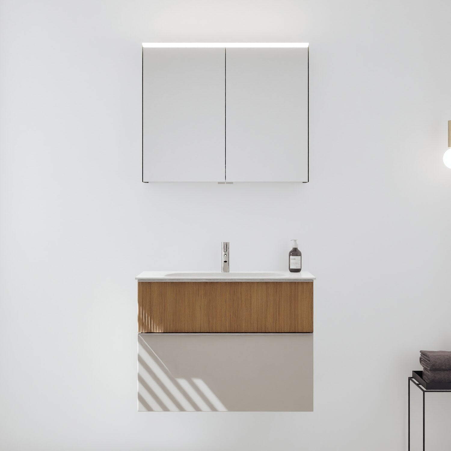 - Spiegelschrank, Waschtischunterschrank, Waschtisch, burgbad cleanFlow, Befestigung außer Stockschrauben