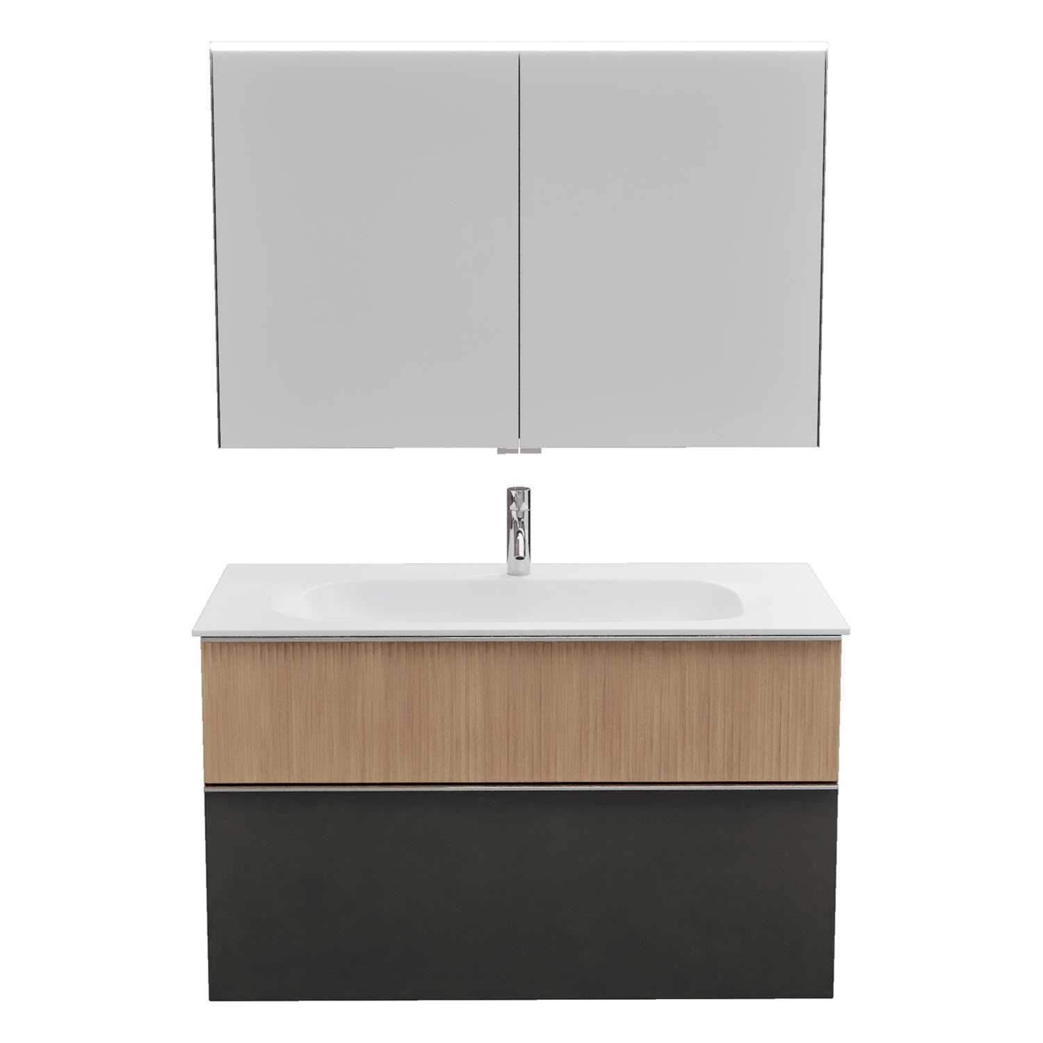 burgbad Fiumo 2.0 Badmöbelset 102 cm mit Waschtisch mit Unterschrank mit Griff G0146 und Spiegelschrank