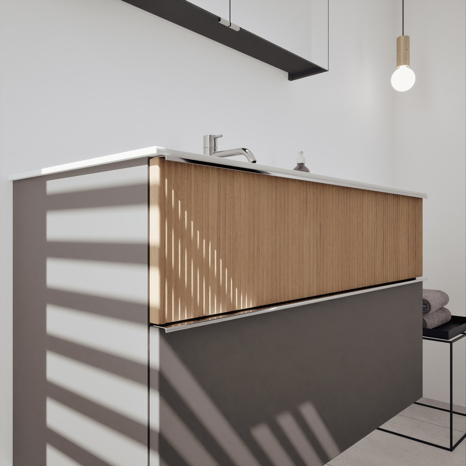 - Spiegelschrank, Waschtischunterschrank, Waschtisch, burgbad cleanFlow, Befestigung außer Stockschrauben