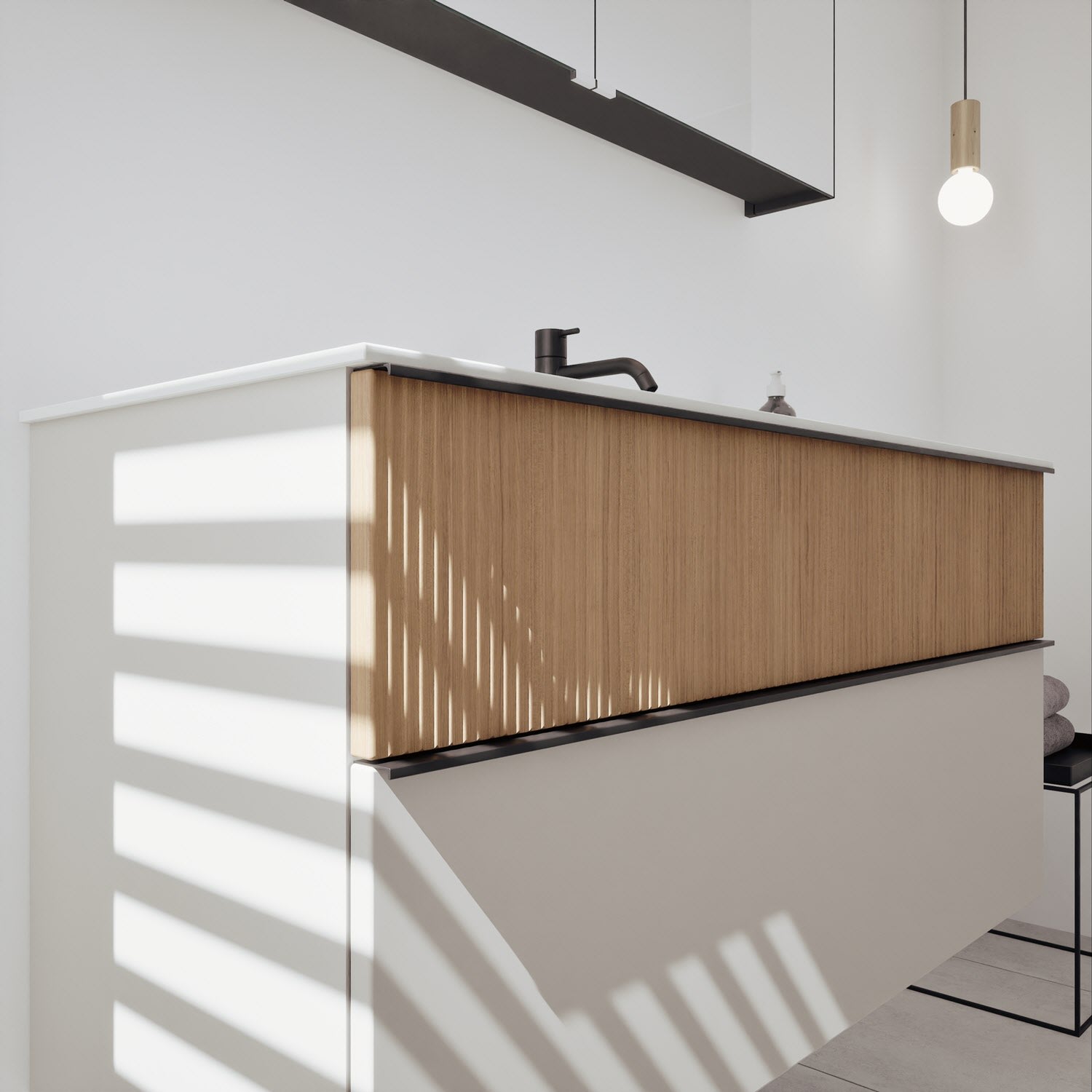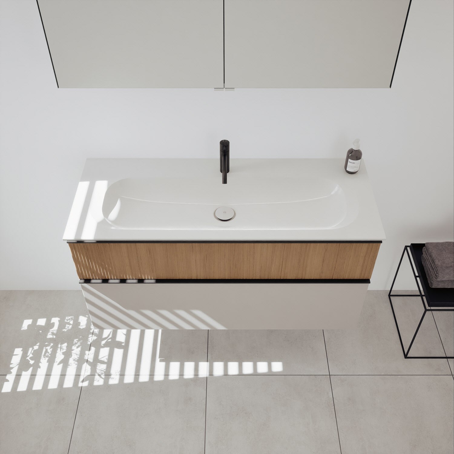 - Spiegelschrank, Waschtischunterschrank, Waschtisch, burgbad cleanFlow, Befestigung außer Stockschrauben