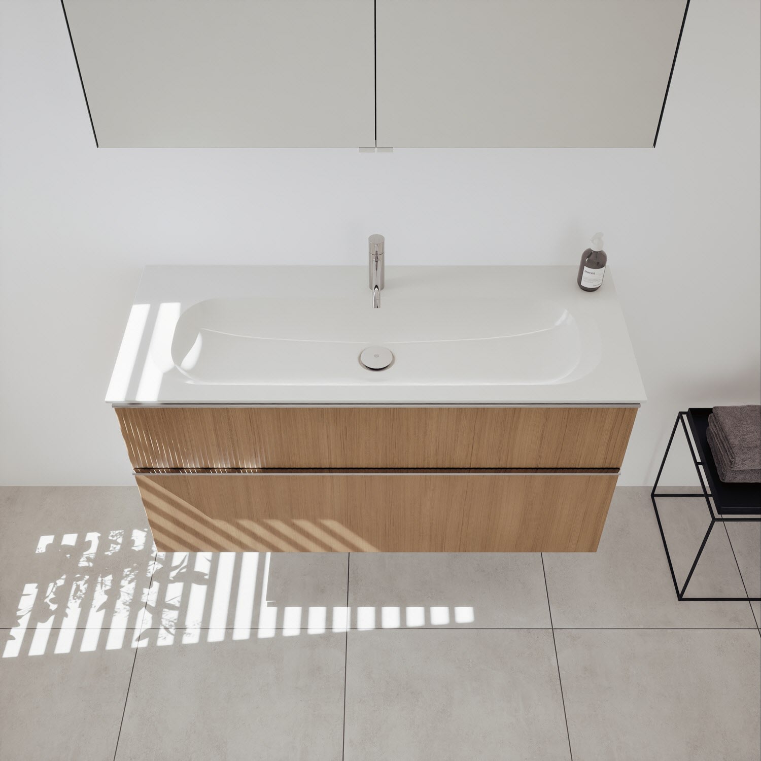 burgbad Fiumo 2.0 Badmöbelset 122 cm mit Waschtisch mit Unterschrank mit Griff G0146 und Spiegelschrank
