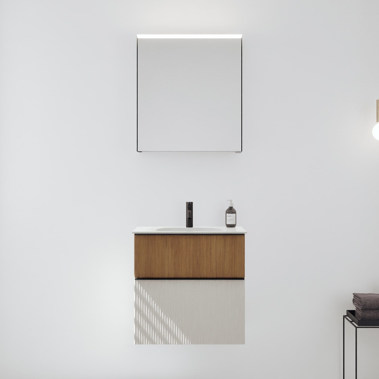 burgbad Fiumo 2.0 Badmöbelset 62 cm mit Waschtisch mit Unterschrank mit Griff G0200 und Spiegelschrank