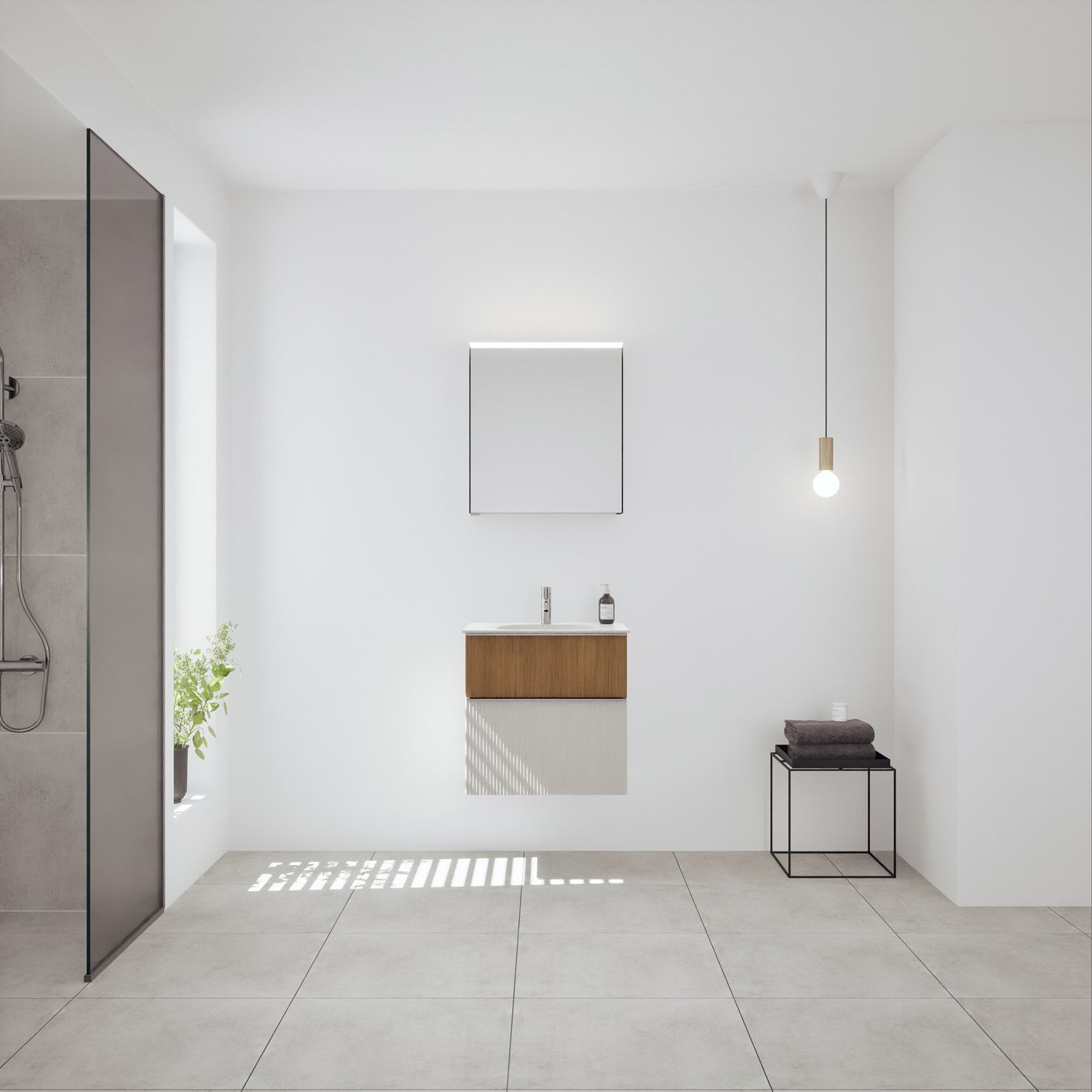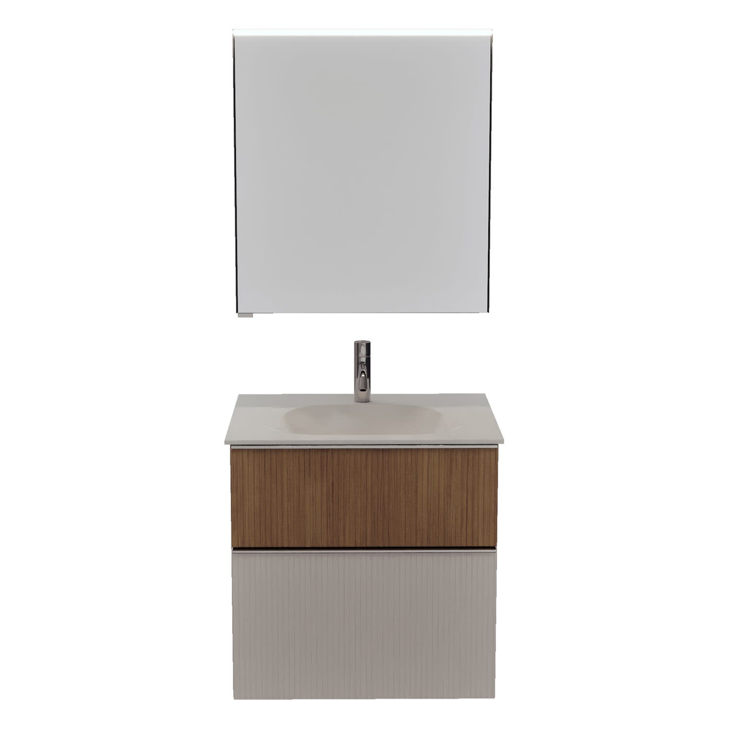 burgbad Fiumo 2.0 Badmöbelset 62 cm mit Waschtisch mit Unterschrank mit Griff G0146 und Spiegelschrank