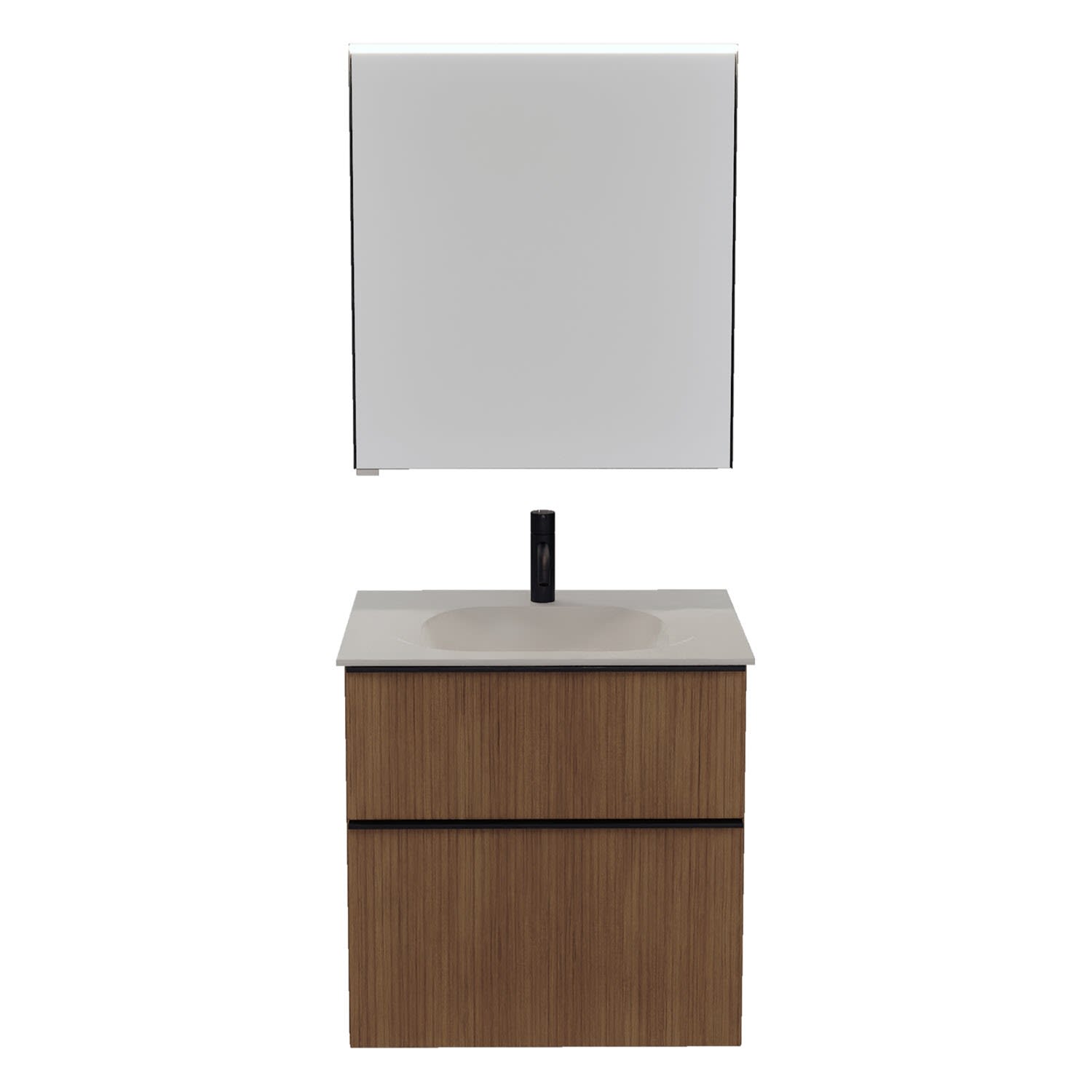 burgbad Fiumo 2.0 Badmöbelset 62 cm mit Waschtisch mit Unterschrank mit Griff G0200 und Spiegelschrank