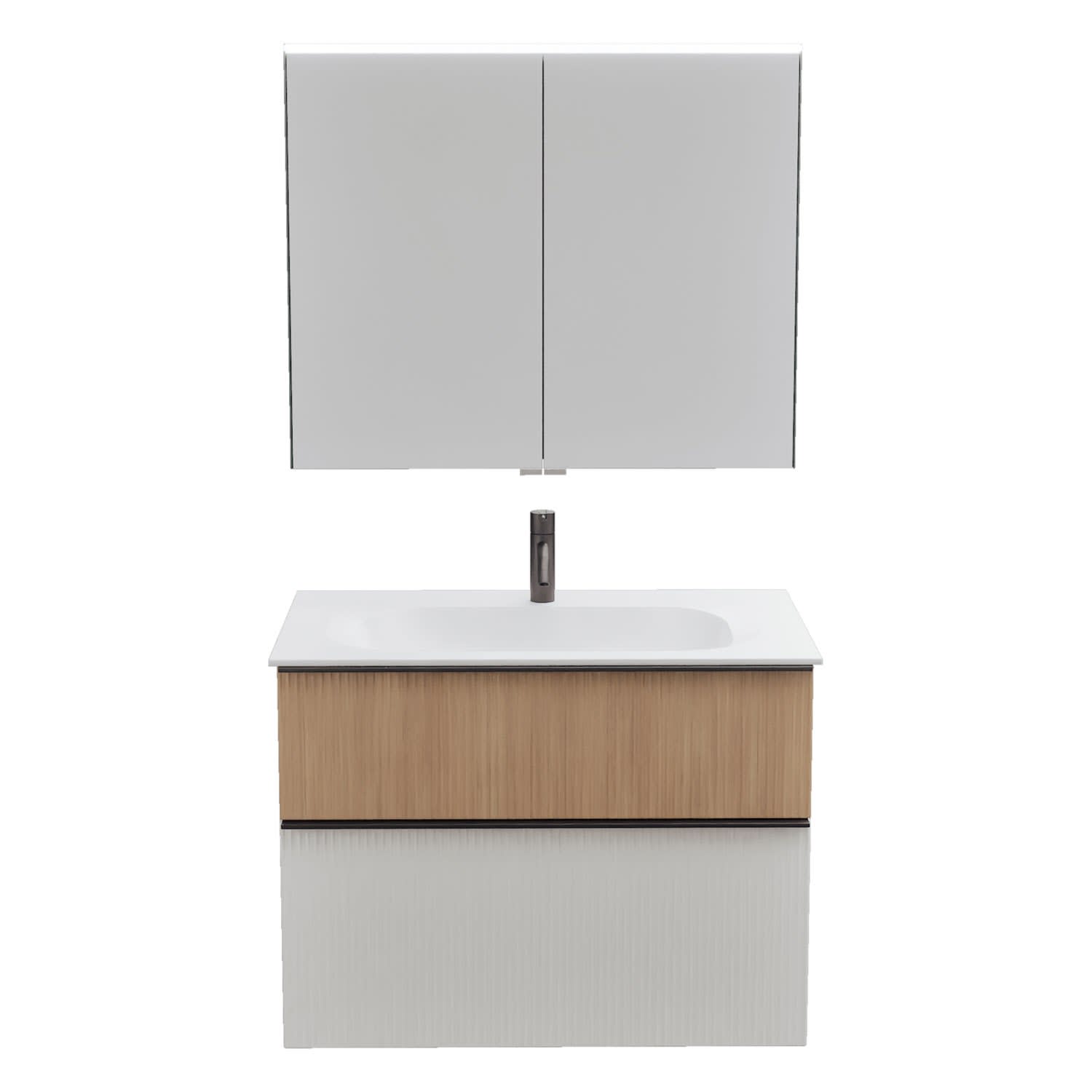 burgbad Fiumo 2.0 Badmöbelset 82 cm mit Waschtisch mit Unterschrank mit Griff G0200 und Spiegelschrank