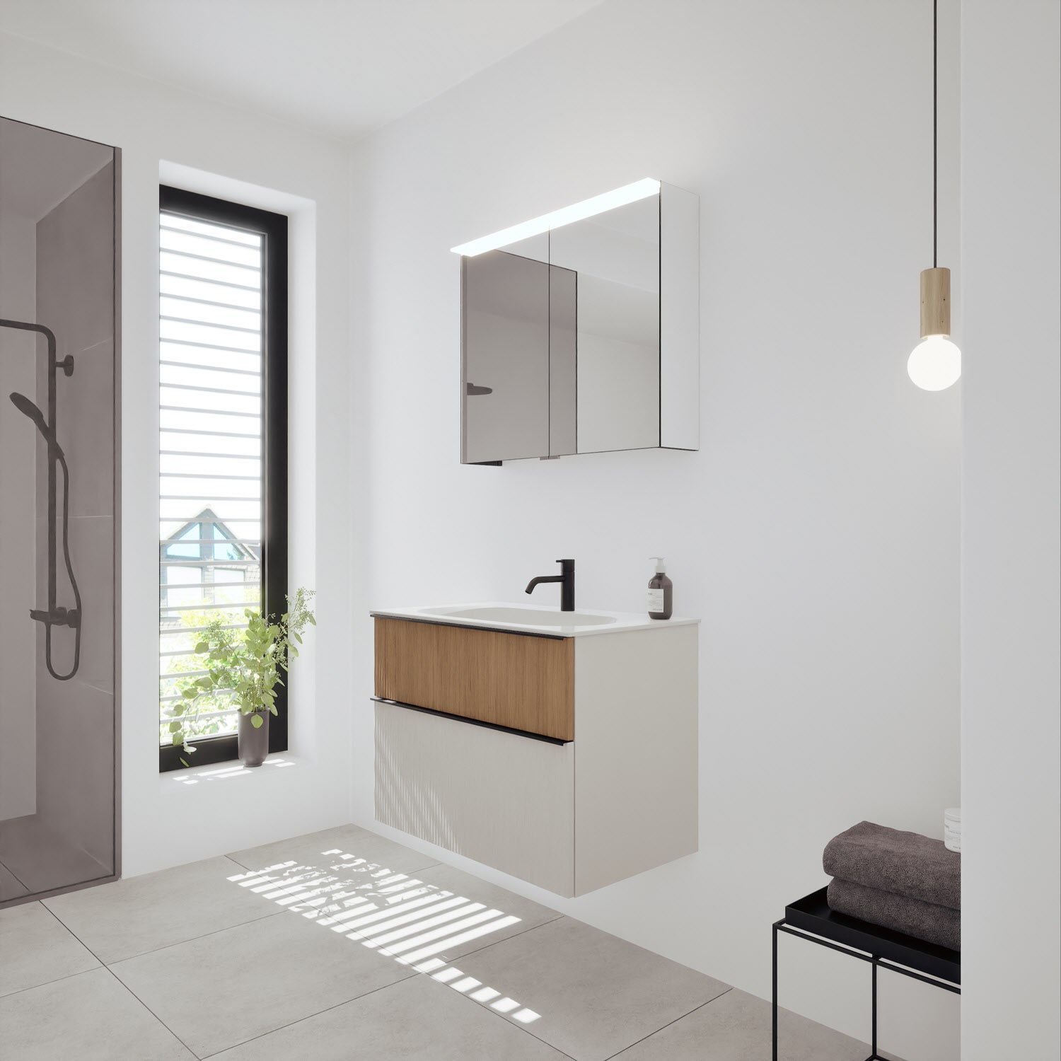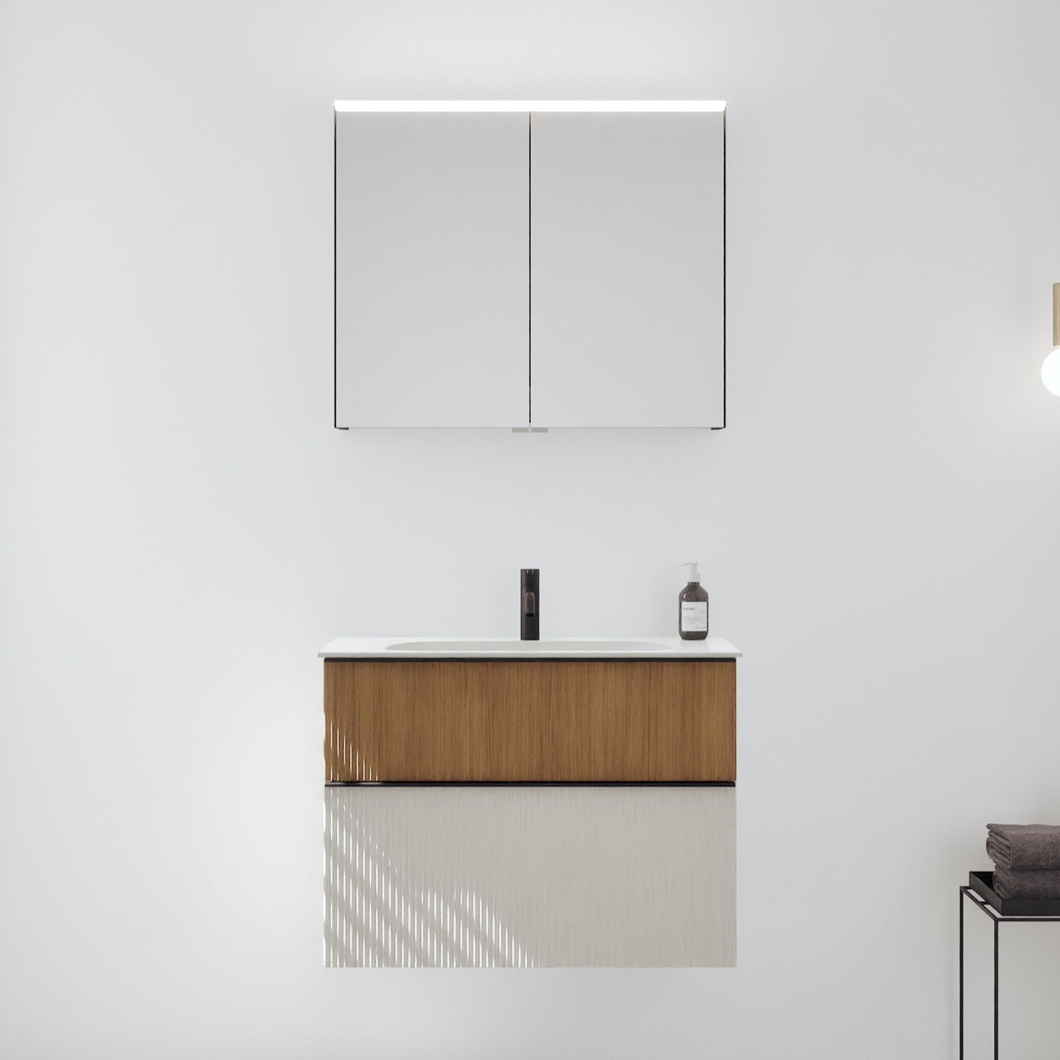 - Spiegelschrank, Waschtischunterschrank, Waschtisch,burgbad cleanFlow, Befestigung außer Stockschrauben