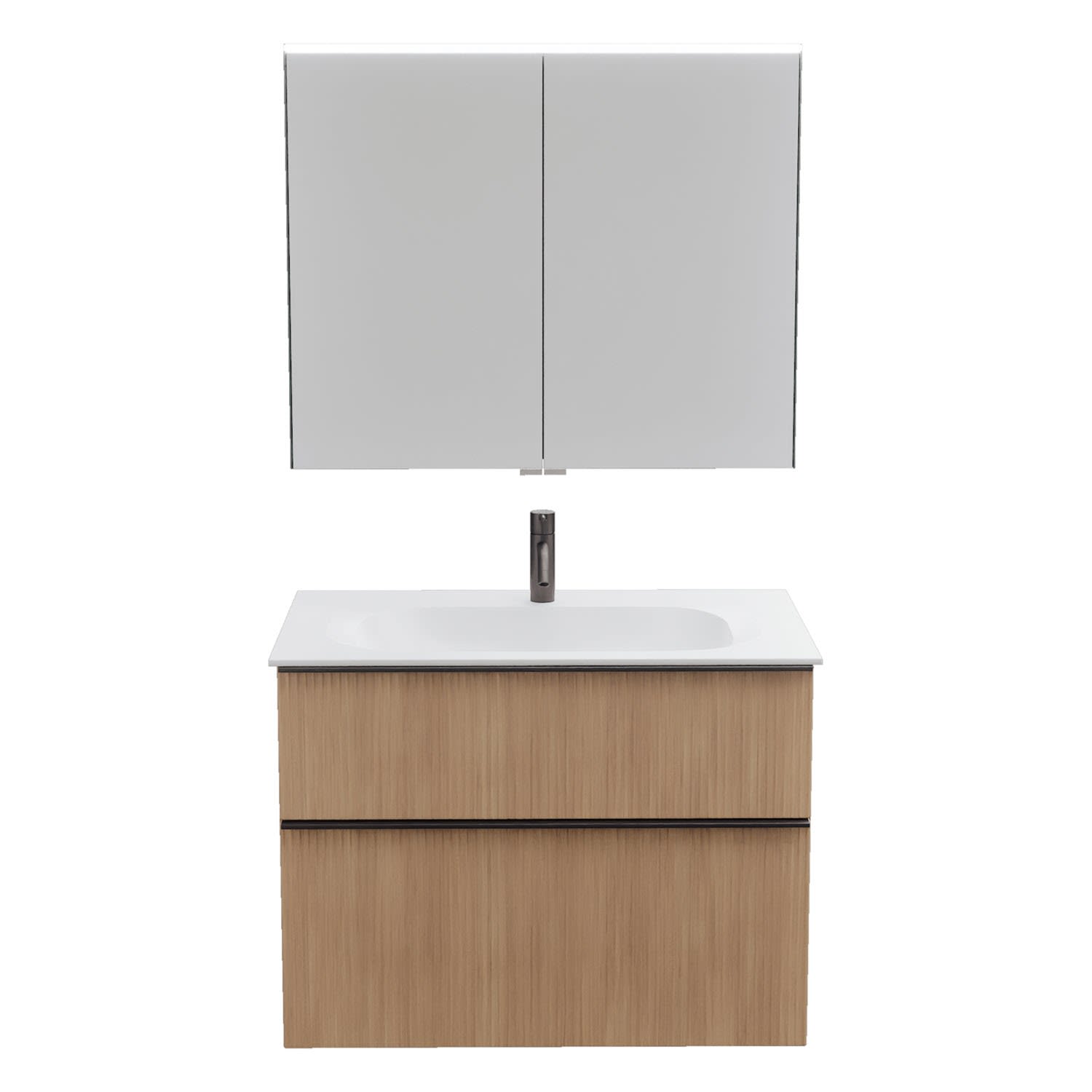 burgbad Fiumo 2.0 Badmöbelset 82 cm mit Waschtisch mit Unterschrank mit Griff G0200 und Spiegelschrank