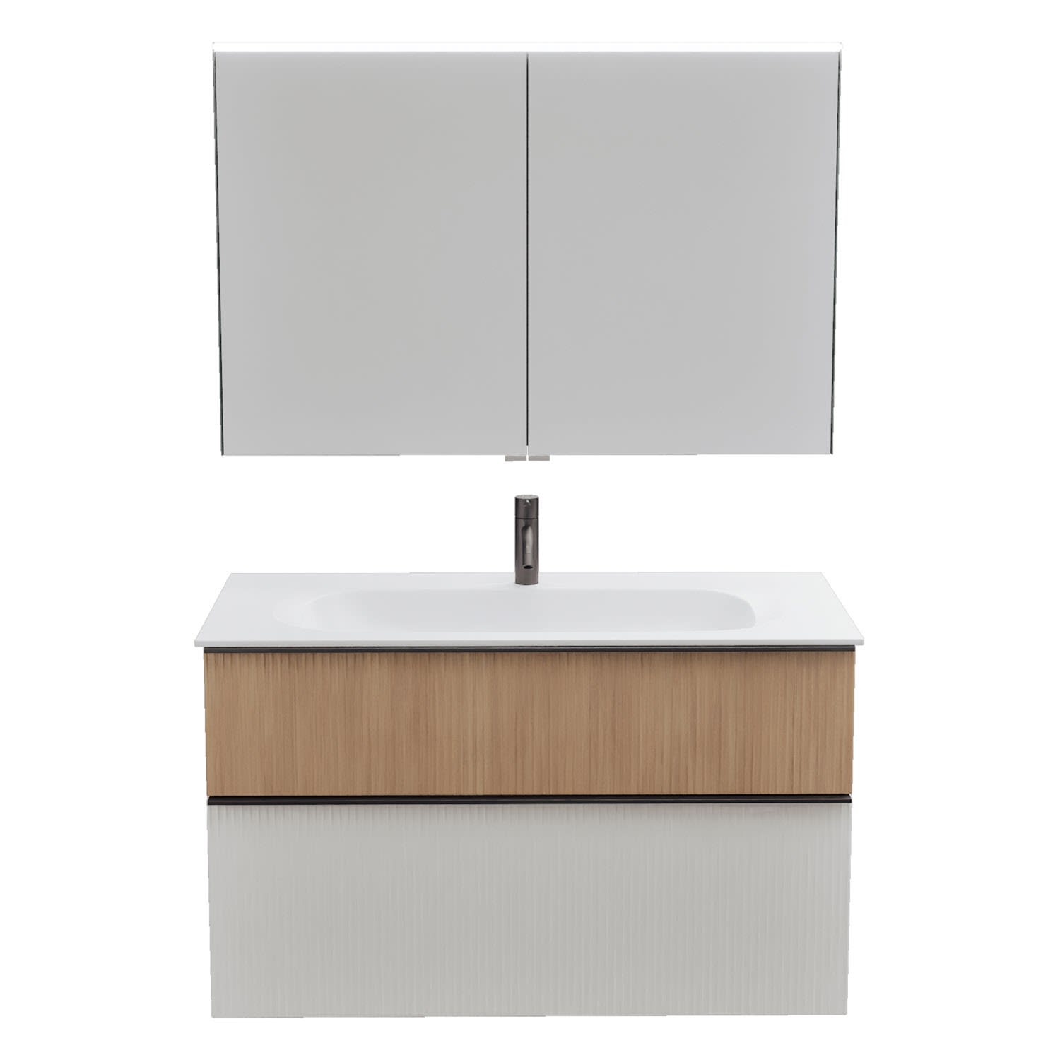 burgbad Fiumo 2.0 Badmöbelset 102 cm mit Waschtisch mit Unterschrank mit Griff G0200 und Spiegelschrank