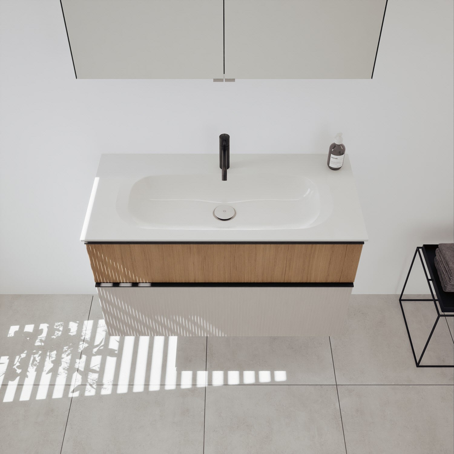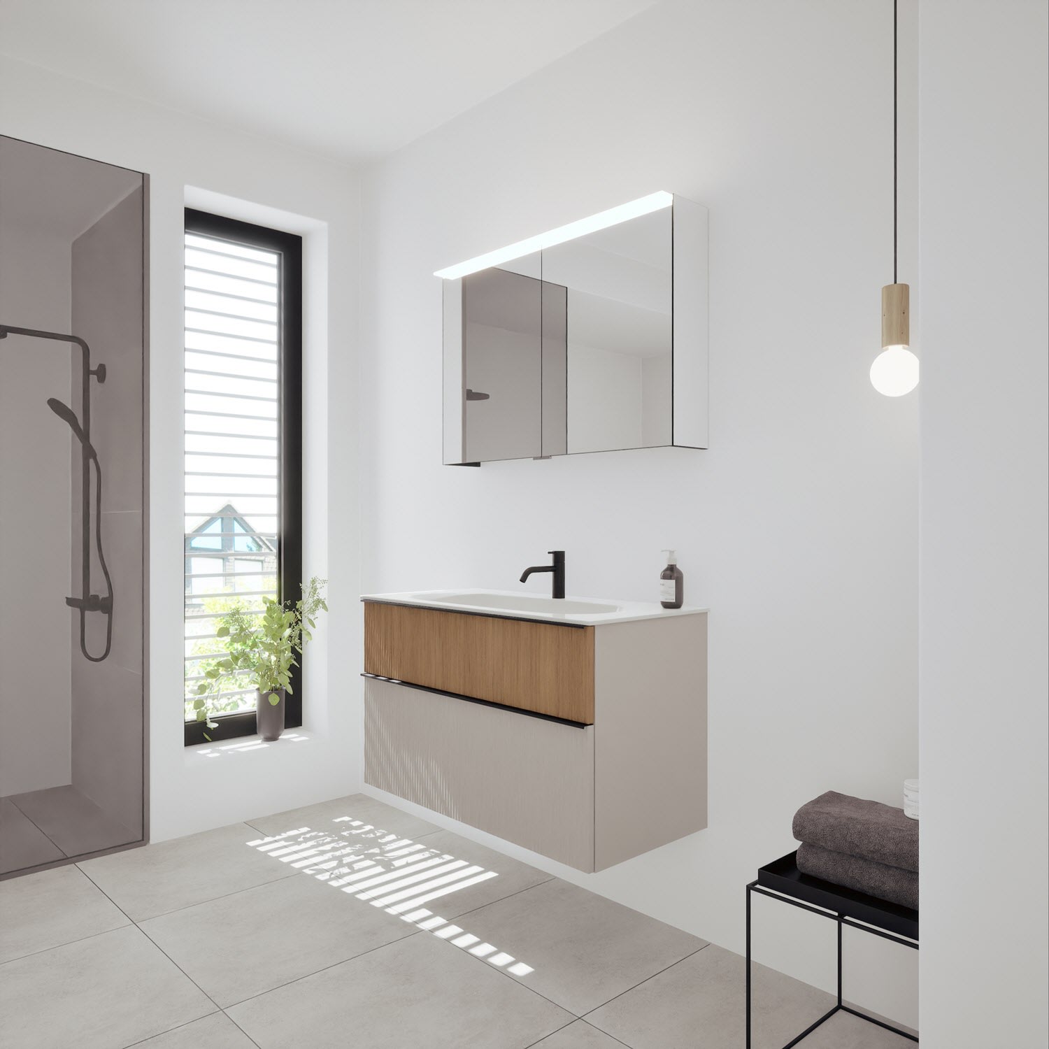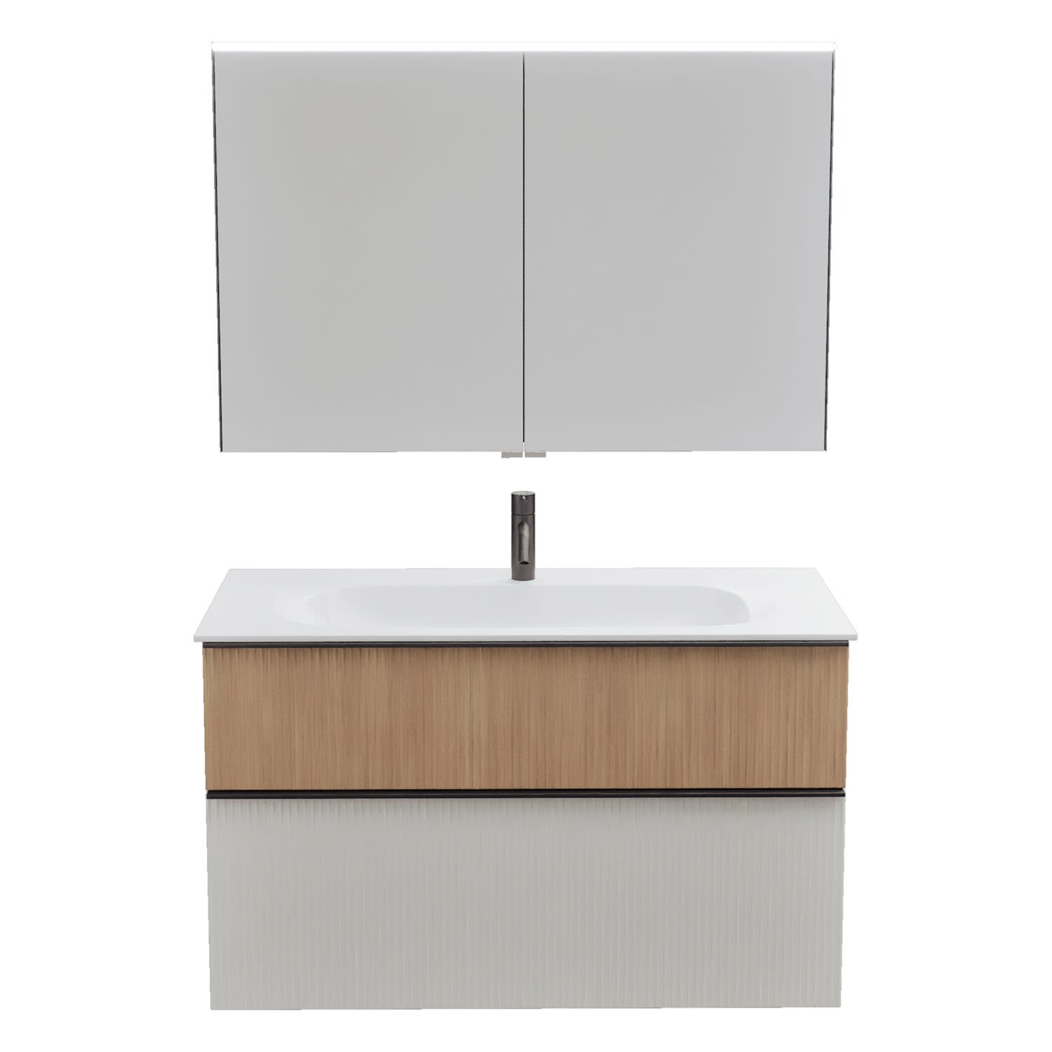 burgbad Fiumo 2.0 Badmöbelset 102 cm mit Waschtisch mit Unterschrank mit Griff G0200 und Spiegelschrank
