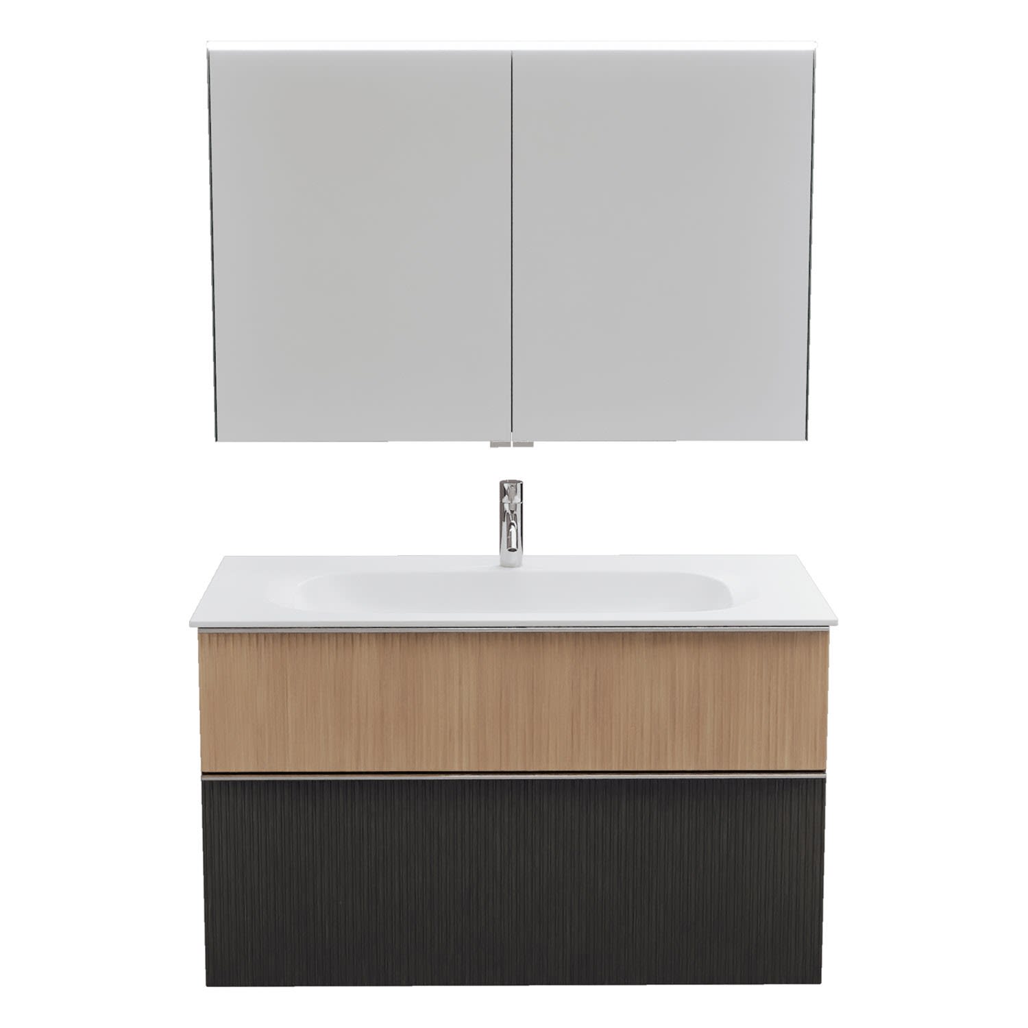 burgbad Fiumo 2.0 Badmöbelset 102 cm mit Waschtisch mit Unterschrank mit Griff G0146 und Spiegelschrank