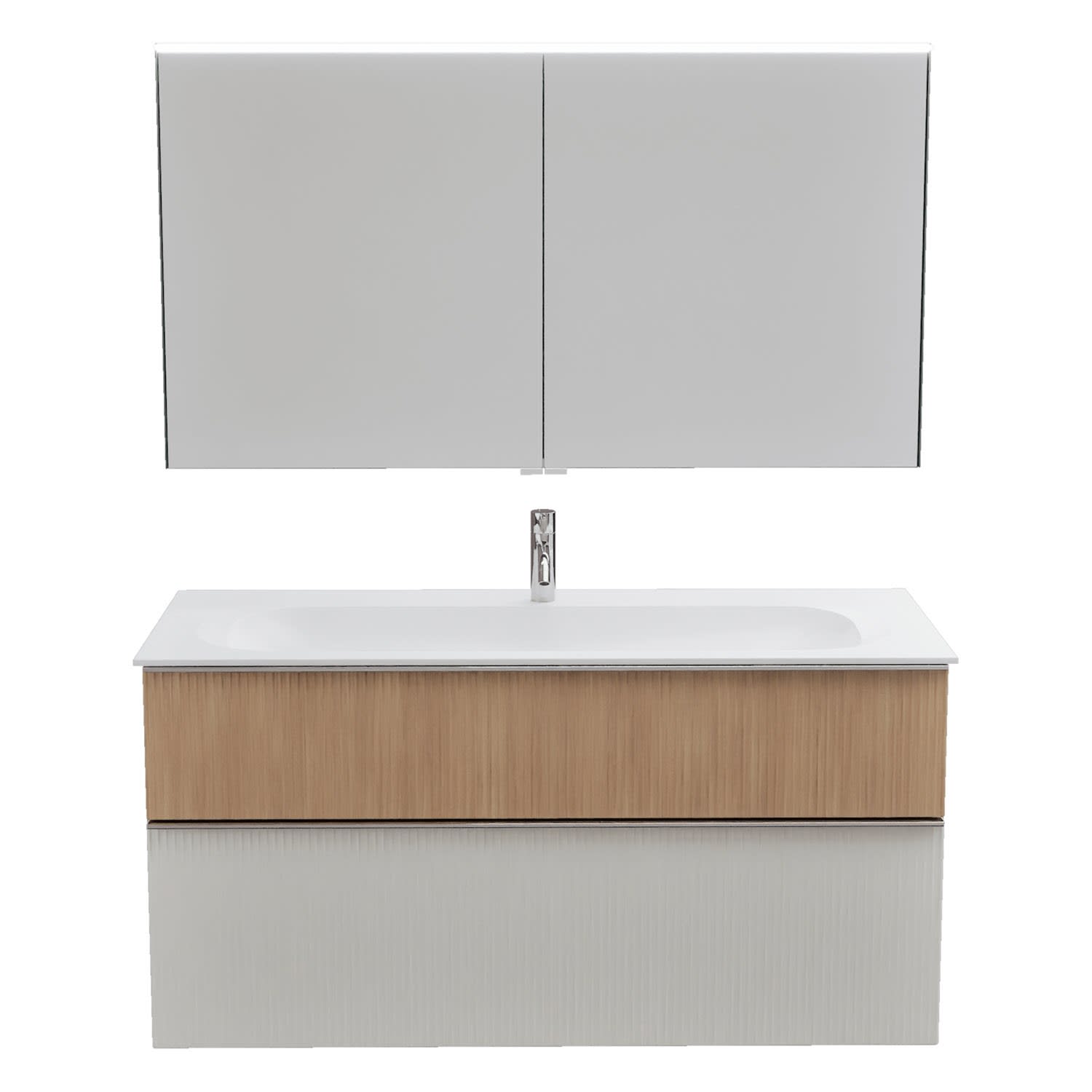 burgbad Fiumo 2.0 Badmöbelset 122 cm mit Waschtisch mit Unterschrank mit Griff G0146 und Spiegelschrank
