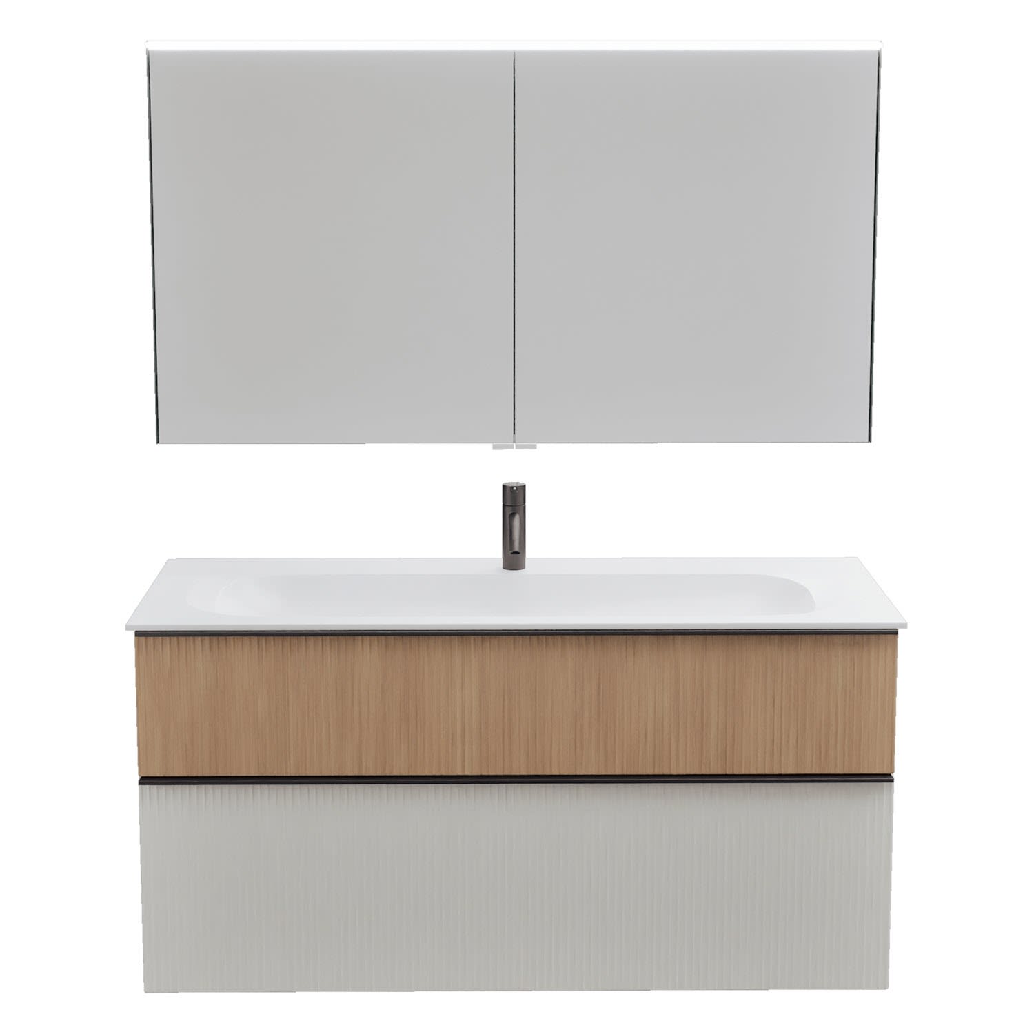 burgbad Fiumo 2.0 Badmöbelset 122 cm mit Waschtisch mit Unterschrank mit Griff G0200 und Spiegelschrank