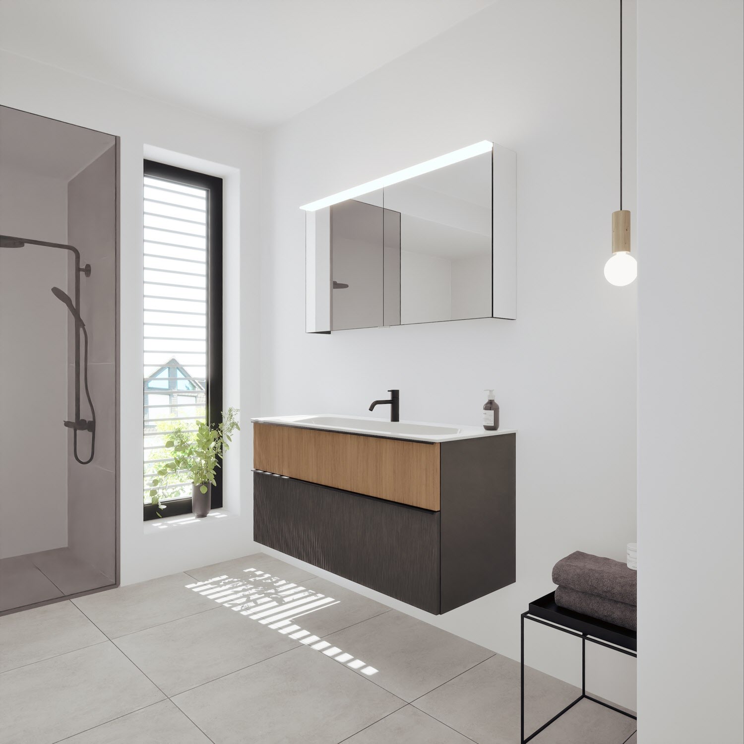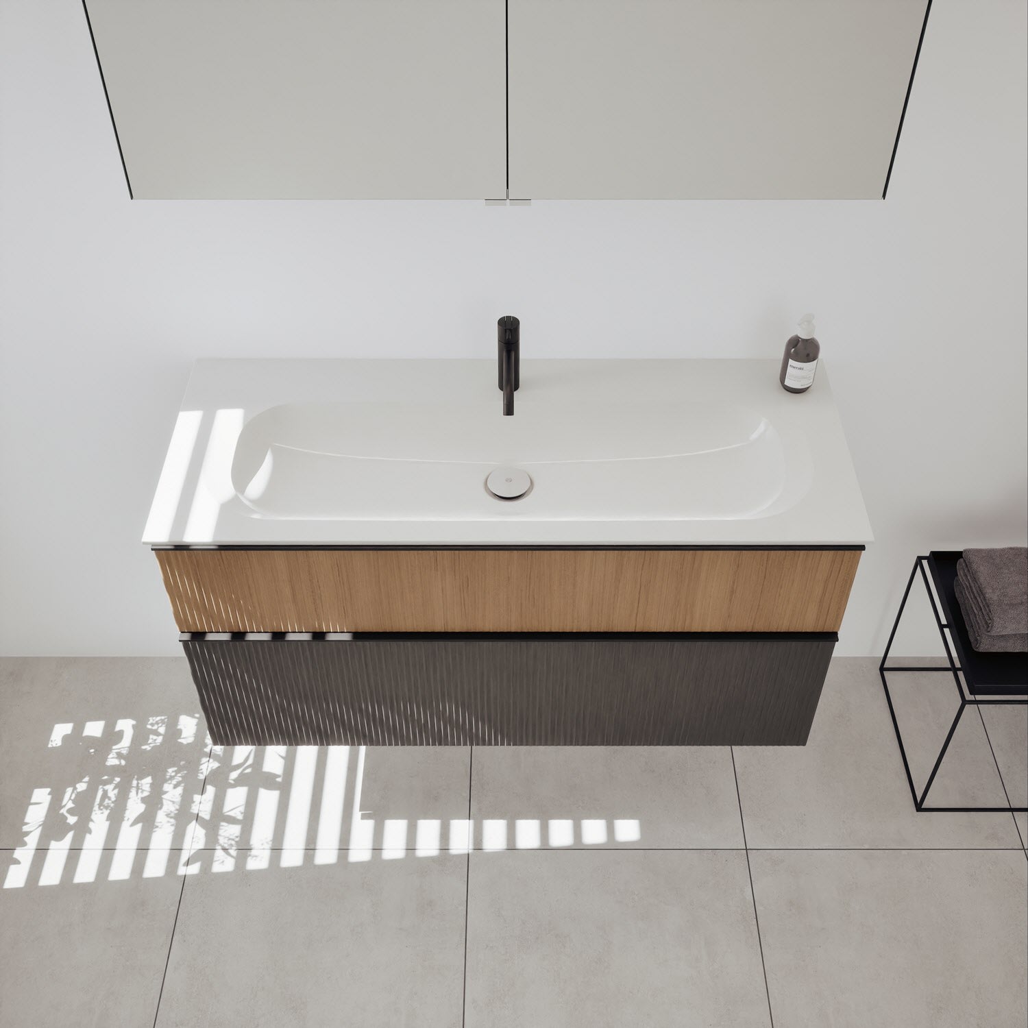 - Spiegelschrank, Waschtischunterschrank, Waschtisch,burgbad cleanFlow, Befestigung außer Stockschrauben