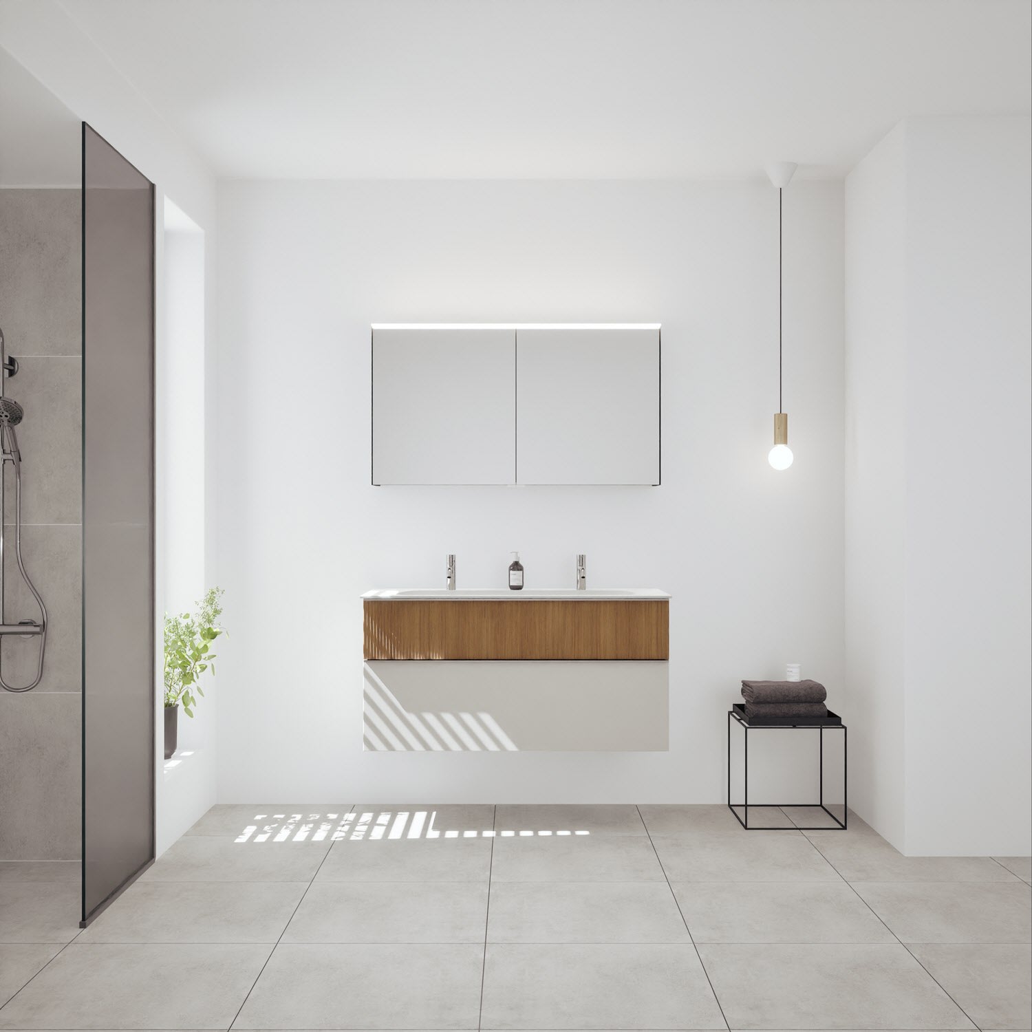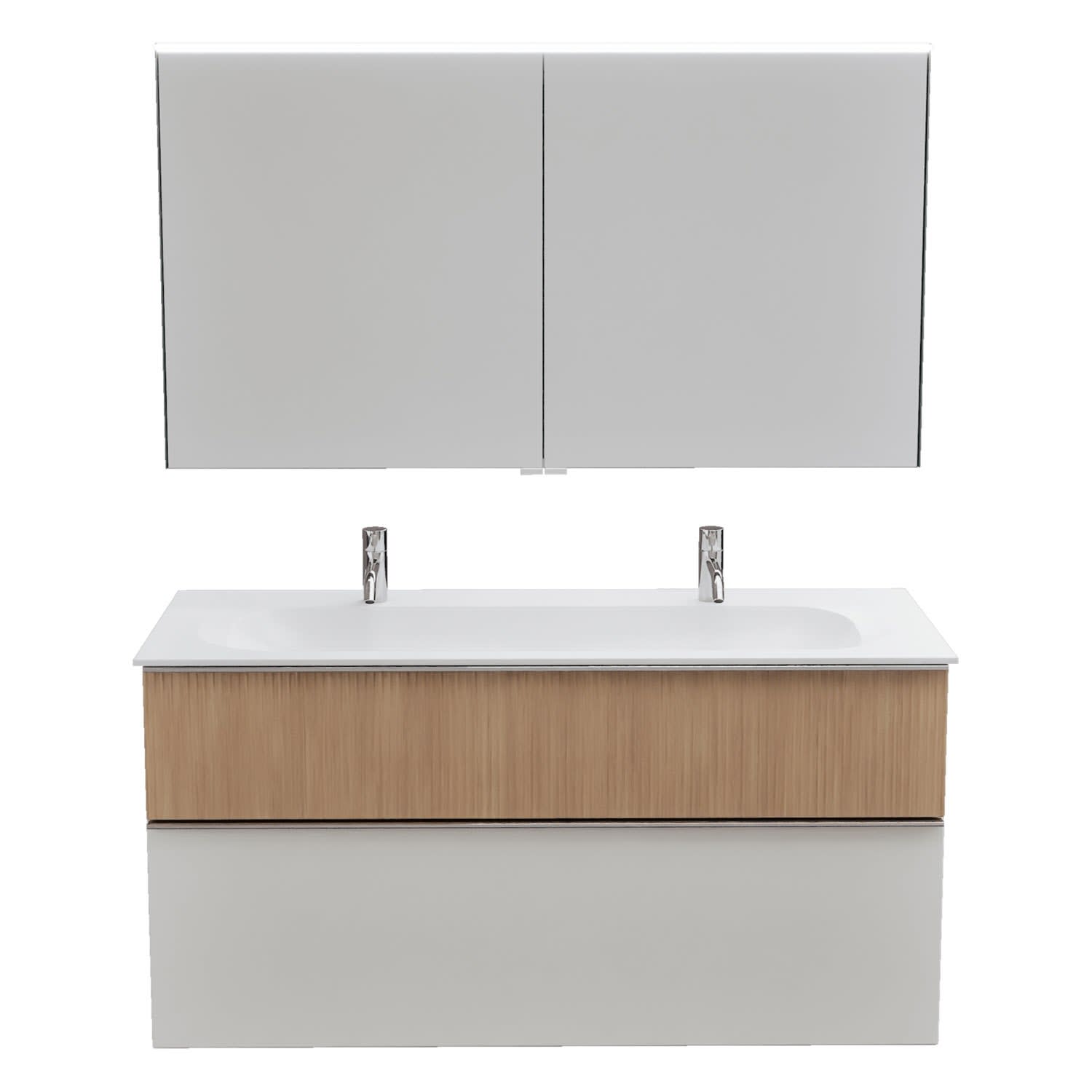 burgbad Fiumo 2.0 Badmöbelset 122 cm mit Waschtisch mit Unterschrank mit Griff G0146 und Spiegelschrank