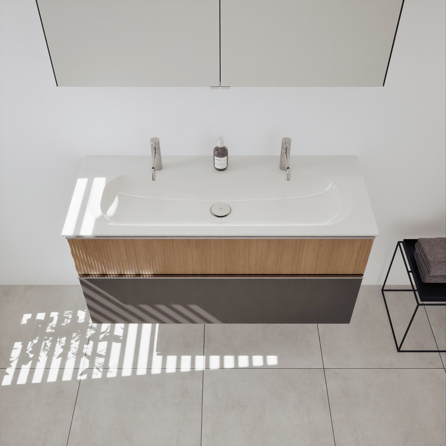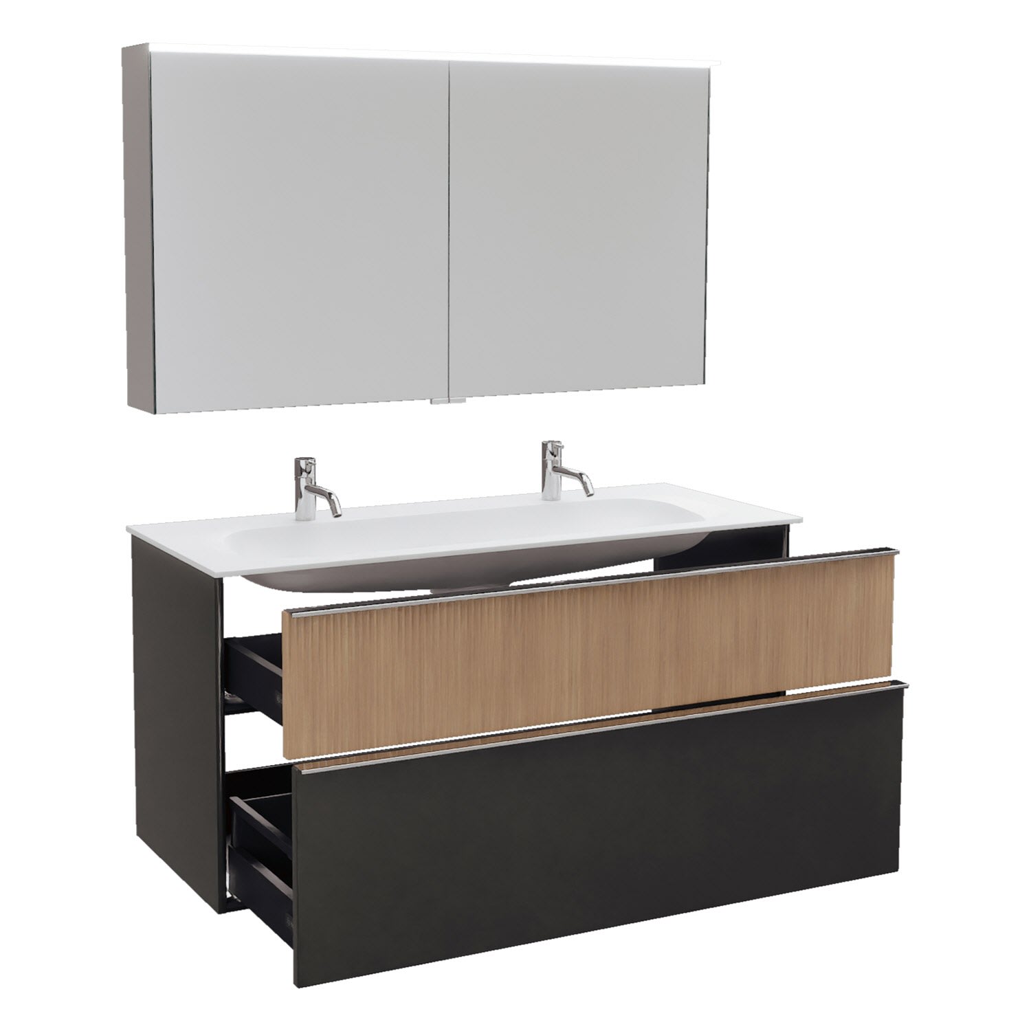 burgbad Fiumo 2.0 Badmöbelset 122 cm mit Waschtisch mit Unterschrank mit Griff G0146 und Spiegelschrank