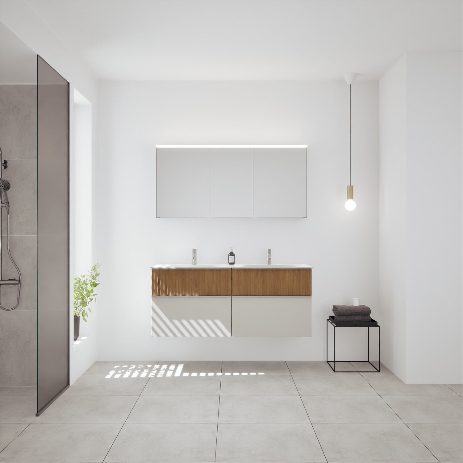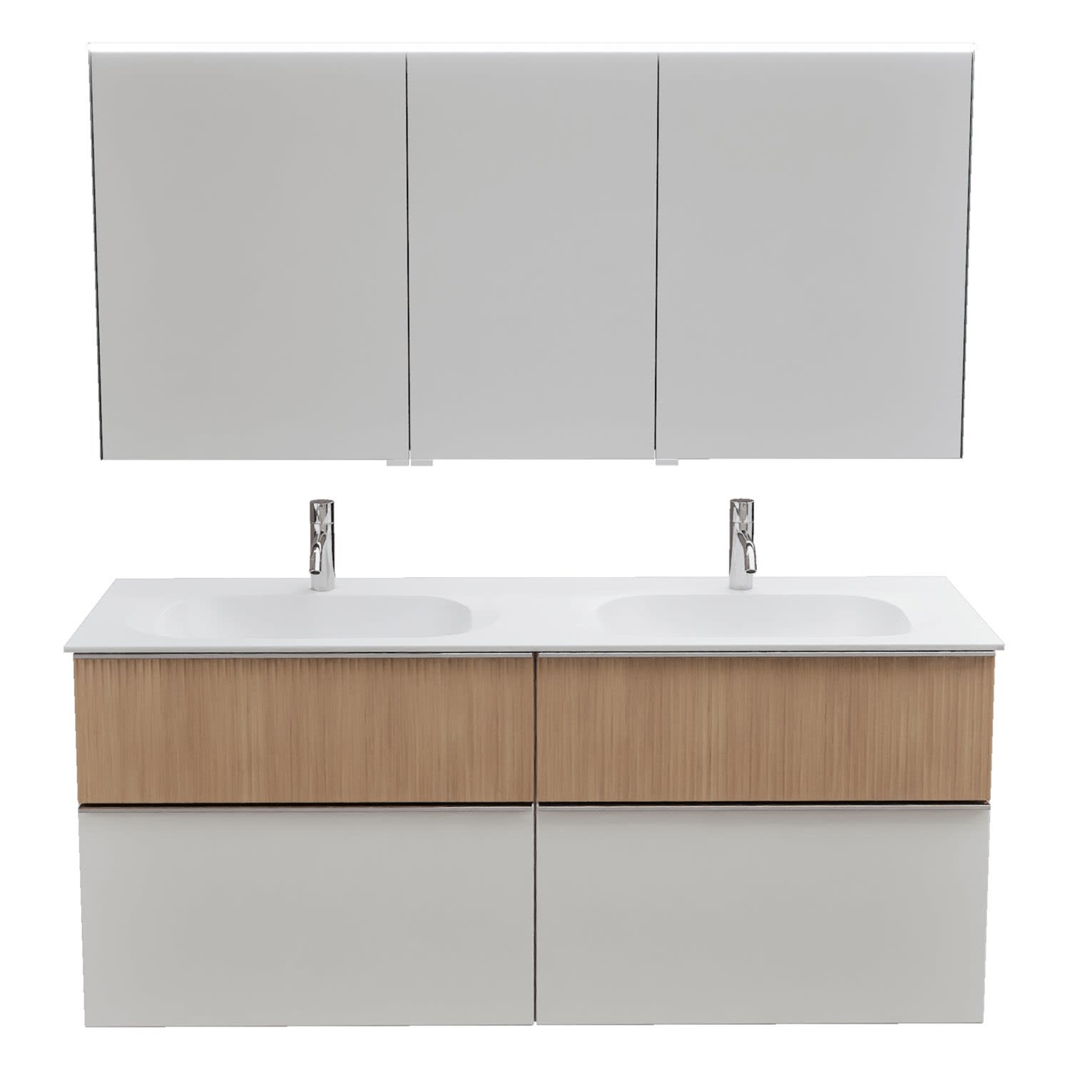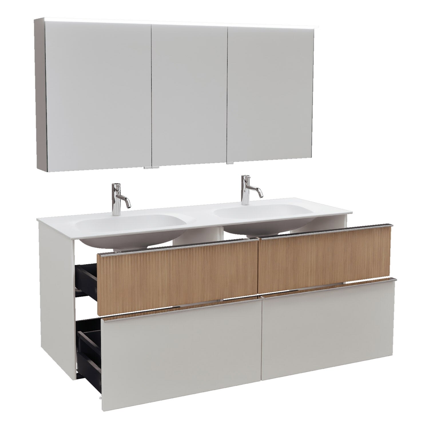 burgbad Fiumo 2.0 Badmöbelset 142 cm mit Waschtisch mit Unterschrank mit Griff G0146 und Spiegelschrank