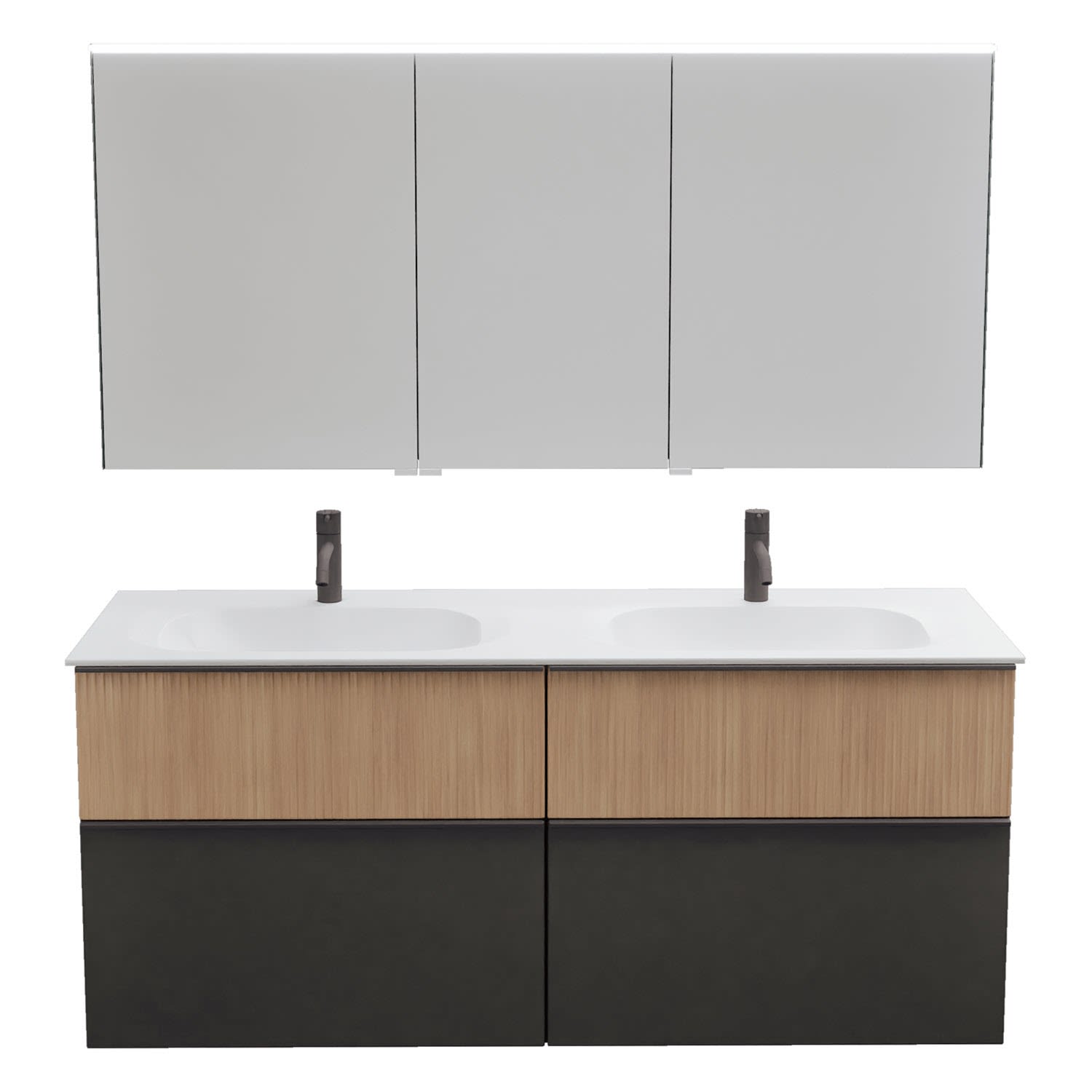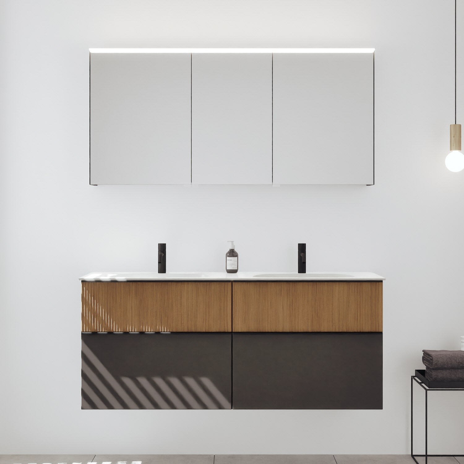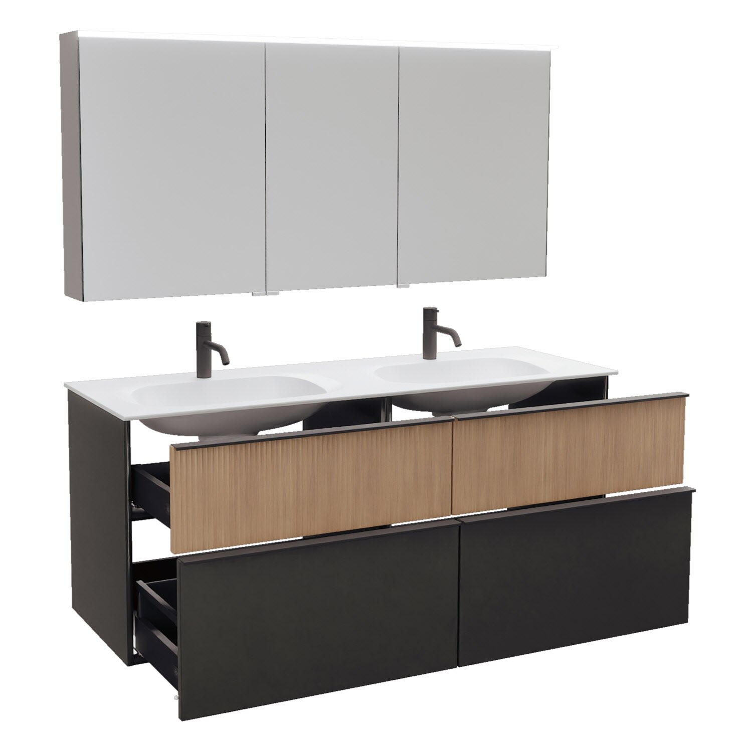 burgbad Fiumo 2.0 Badmöbelset 142 cm mit Waschtisch mit Unterschrank mit Griff G0200 und Spiegelschrank