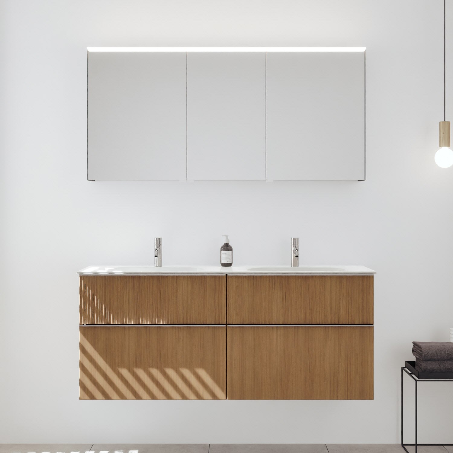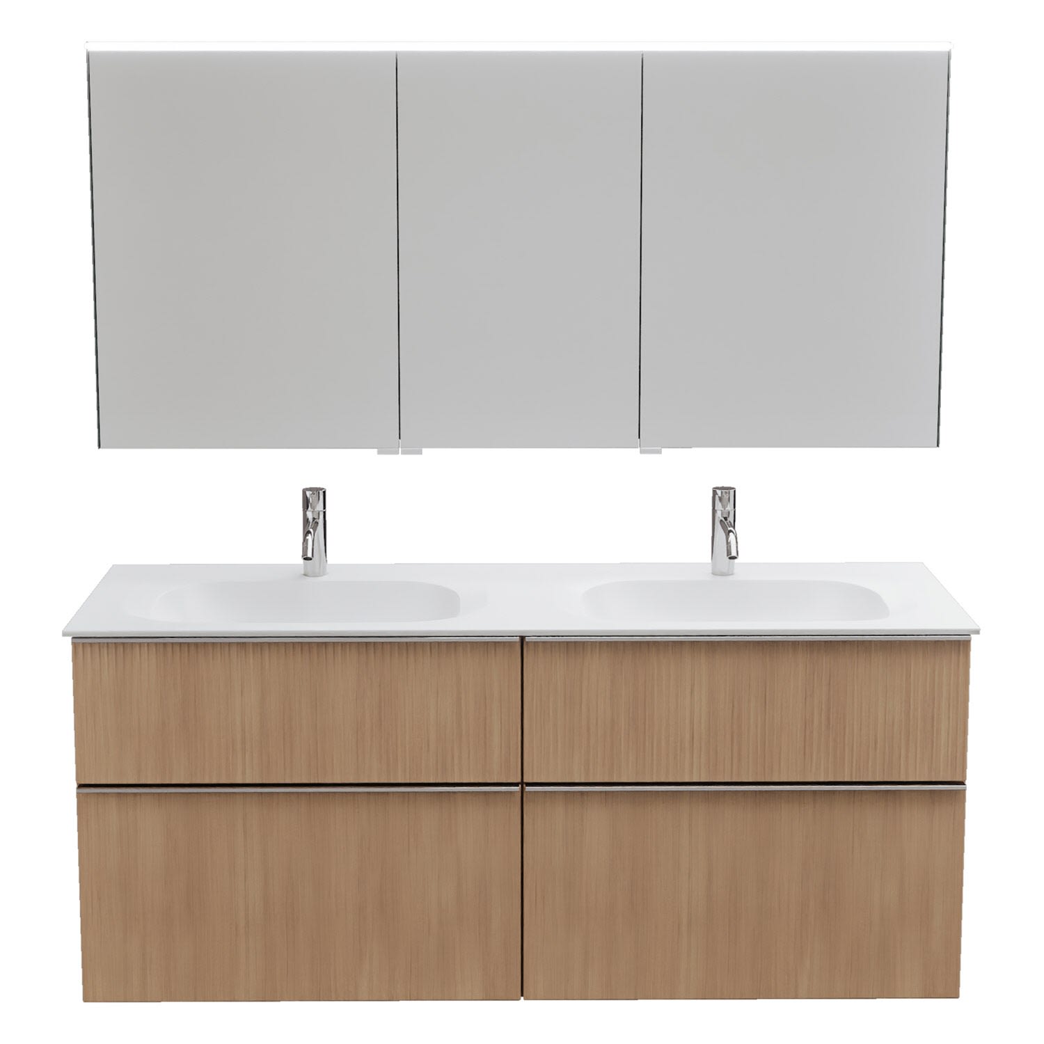 burgbad Fiumo 2.0 Badmöbelset 142 cm mit Waschtisch mit Unterschrank mit Griff G0146 und Spiegelschrank