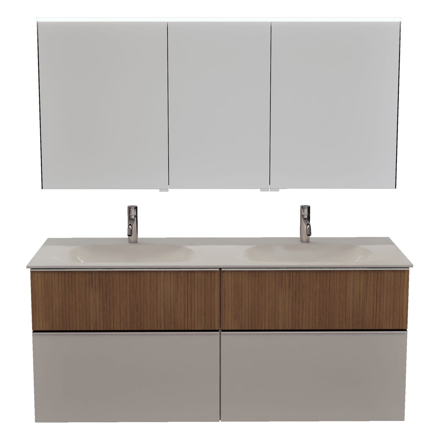 burgbad Fiumo 2.0 Badmöbelset 142 cm mit Waschtisch mit Unterschrank mit Griff G0146 und Spiegelschrank