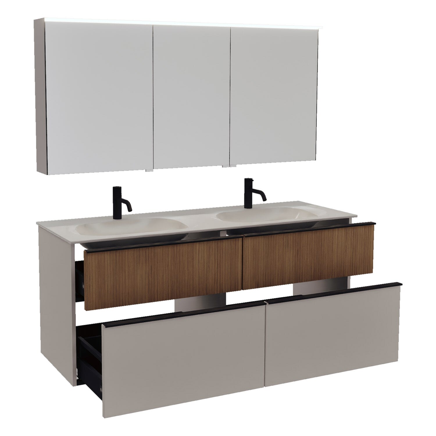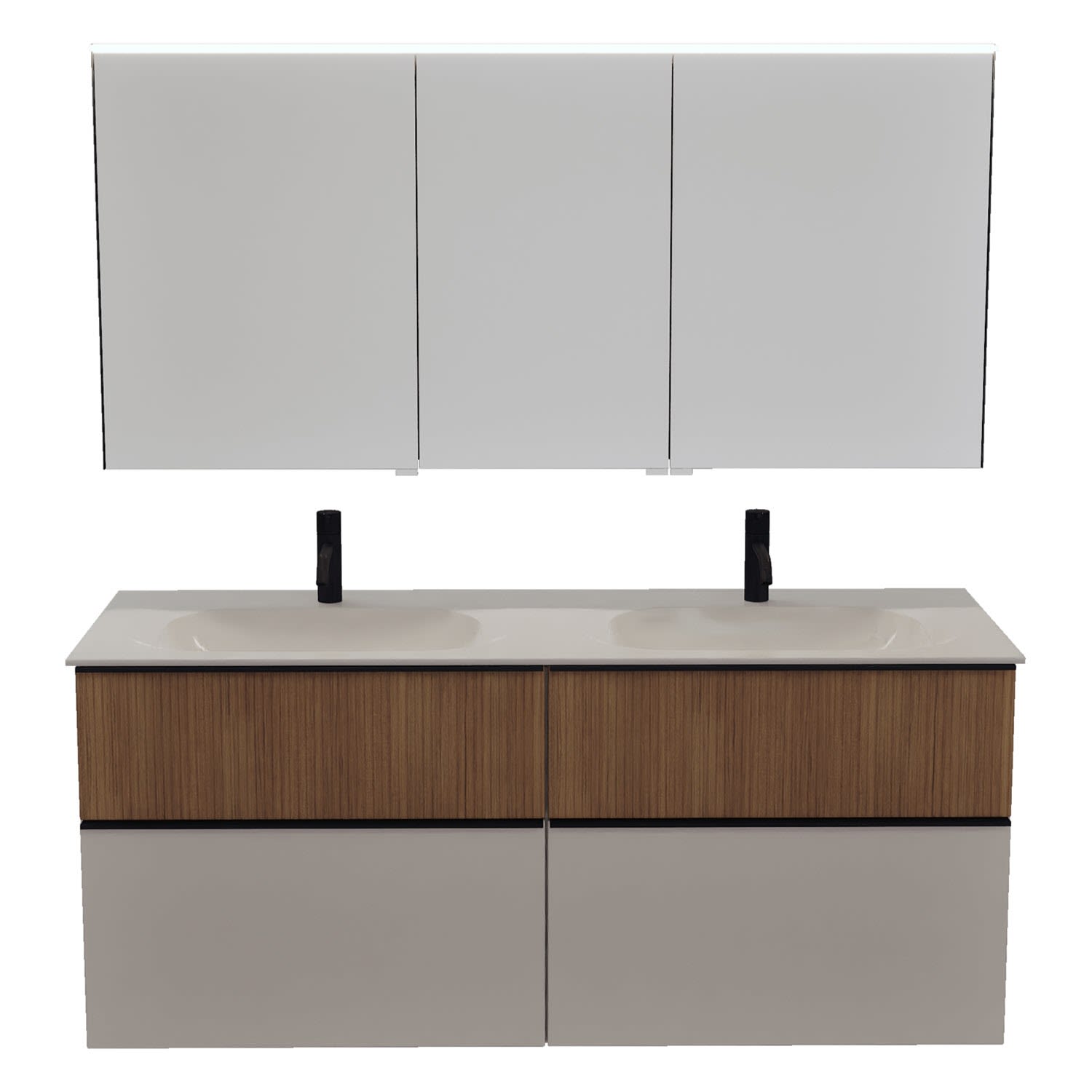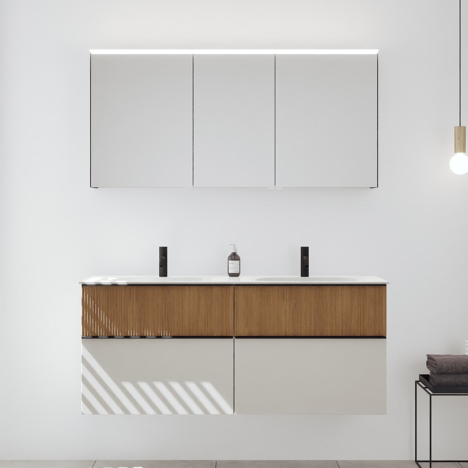 burgbad Fiumo 2.0 Badmöbelset 142 cm mit Waschtisch mit Unterschrank mit Griff G0200 und Spiegelschrank