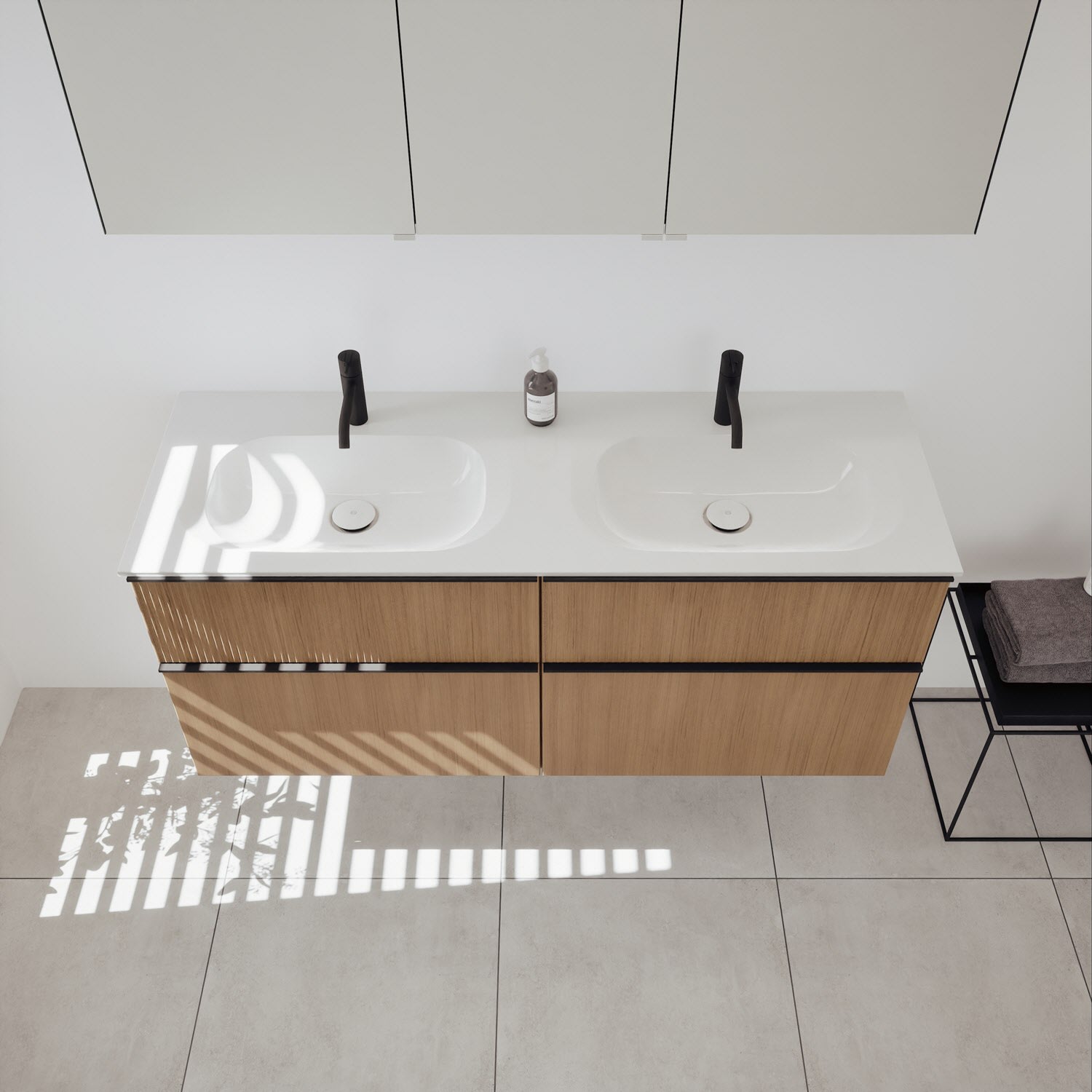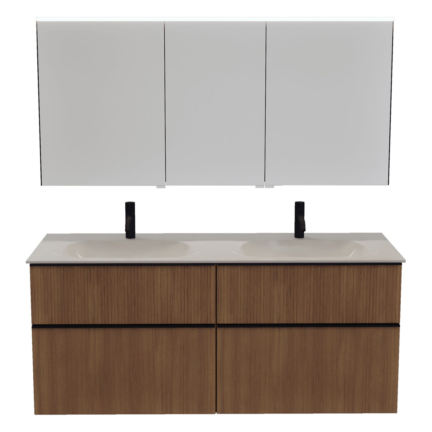 burgbad Fiumo 2.0 Badmöbelset 142 cm mit Waschtisch mit Unterschrank mit Griff G0200 und Spiegelschrank