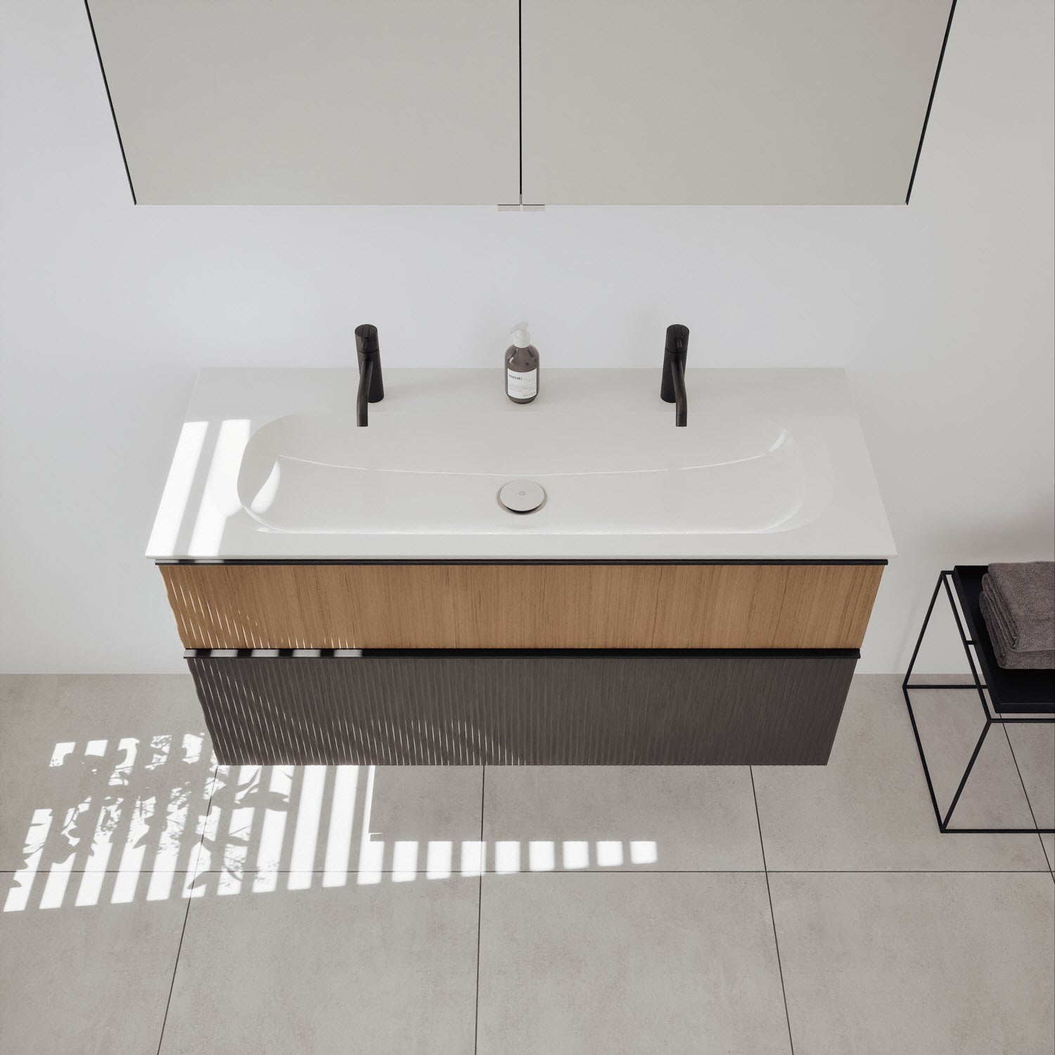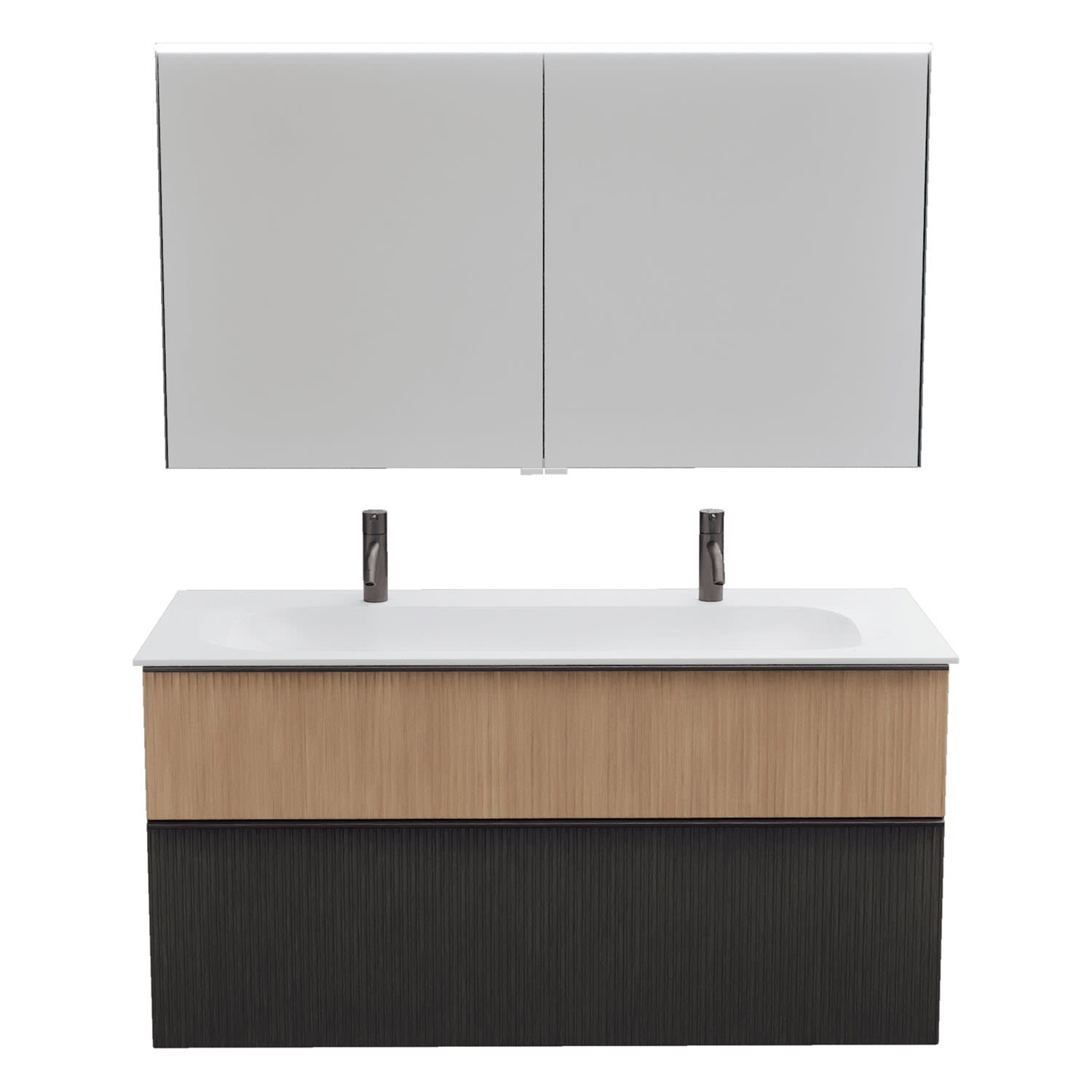 burgbad Fiumo 2.0 Badmöbelset 122 cm mit Waschtisch mit Unterschrank mit Griff G0200 und Spiegelschrank
