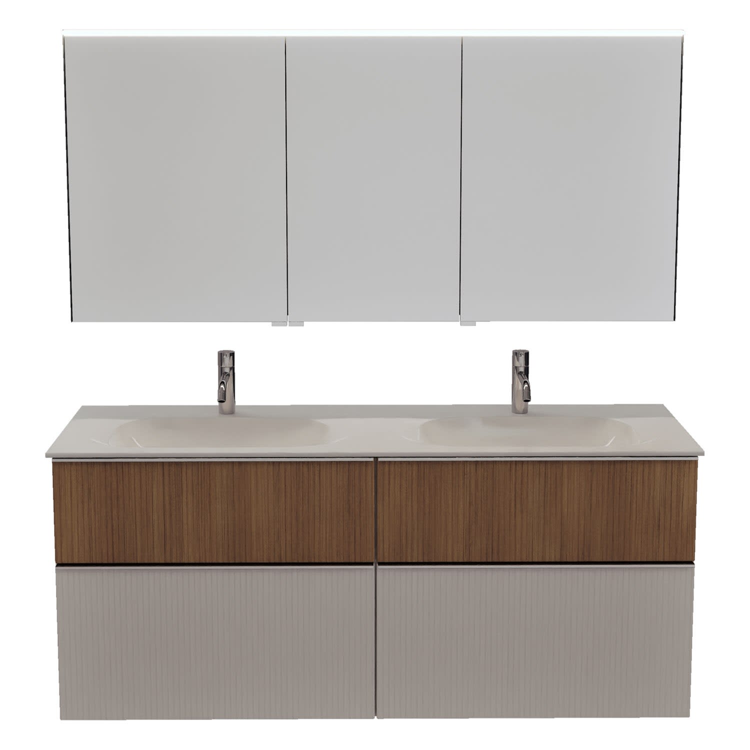 burgbad Fiumo 2.0 Badmöbelset 142 cm mit Waschtisch mit Unterschrank mit Griff G0146 und Spiegelschrank