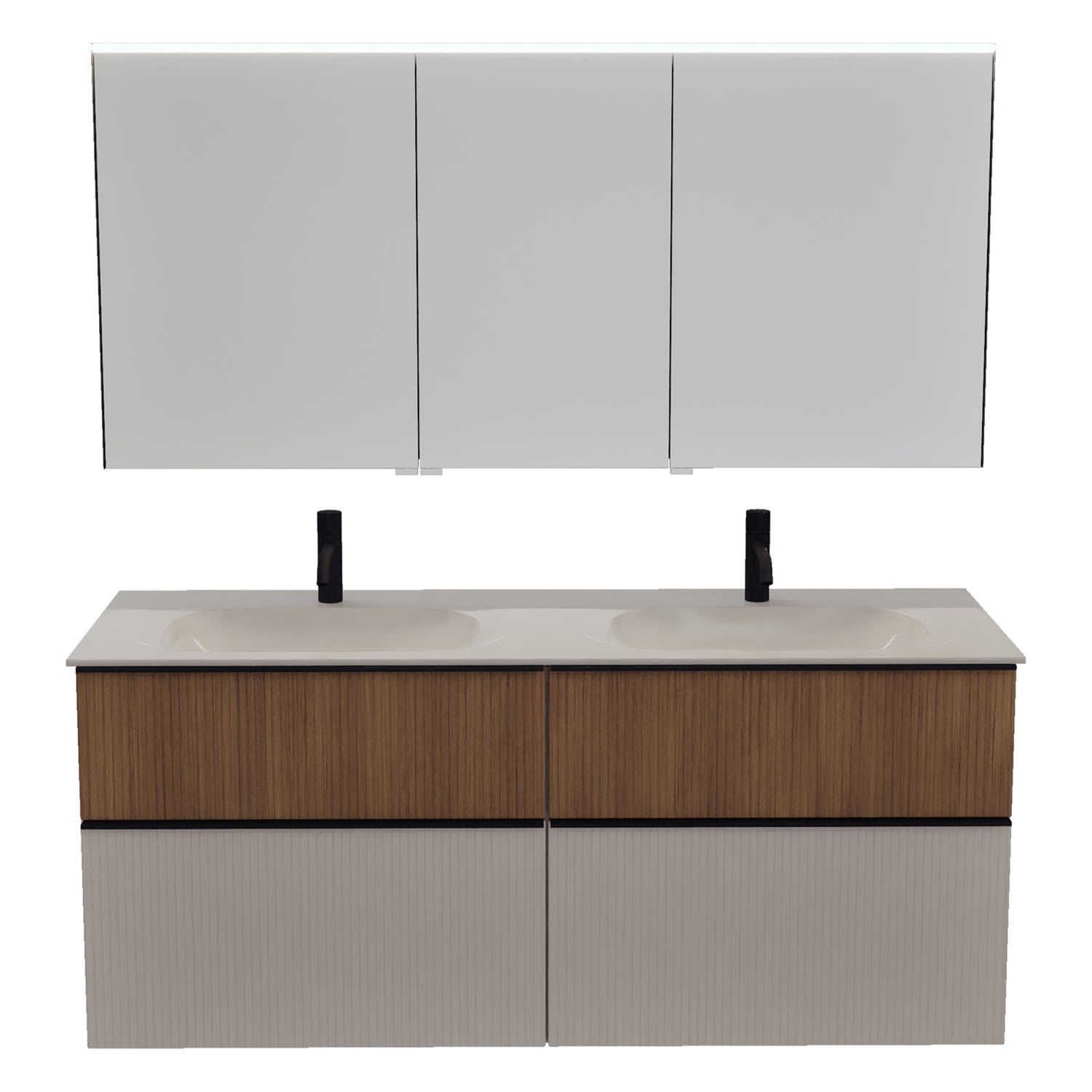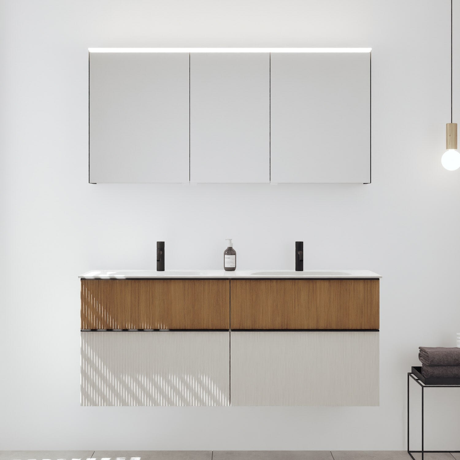 burgbad Fiumo 2.0 Badmöbelset 142 cm mit Waschtisch mit Unterschrank mit Griff G0200 und Spiegelschrank