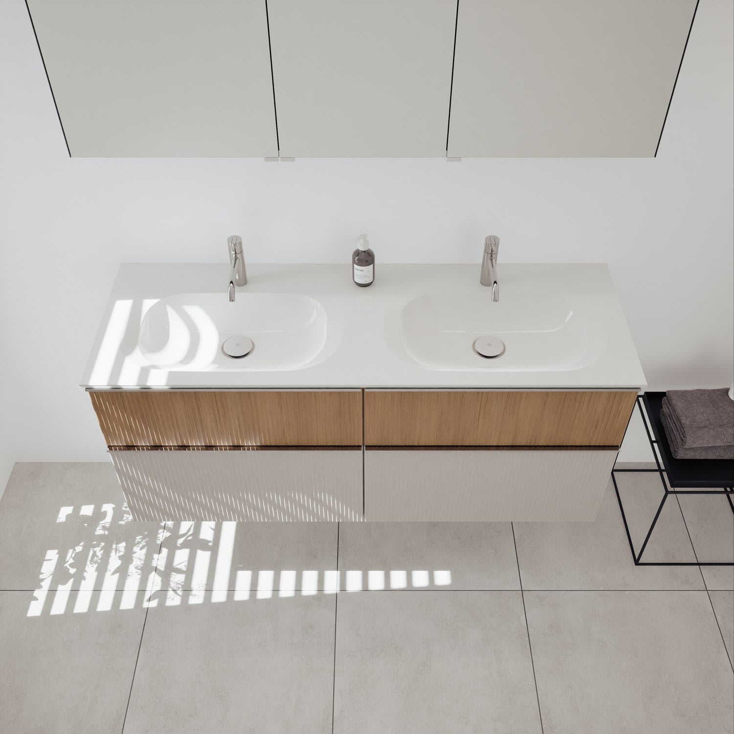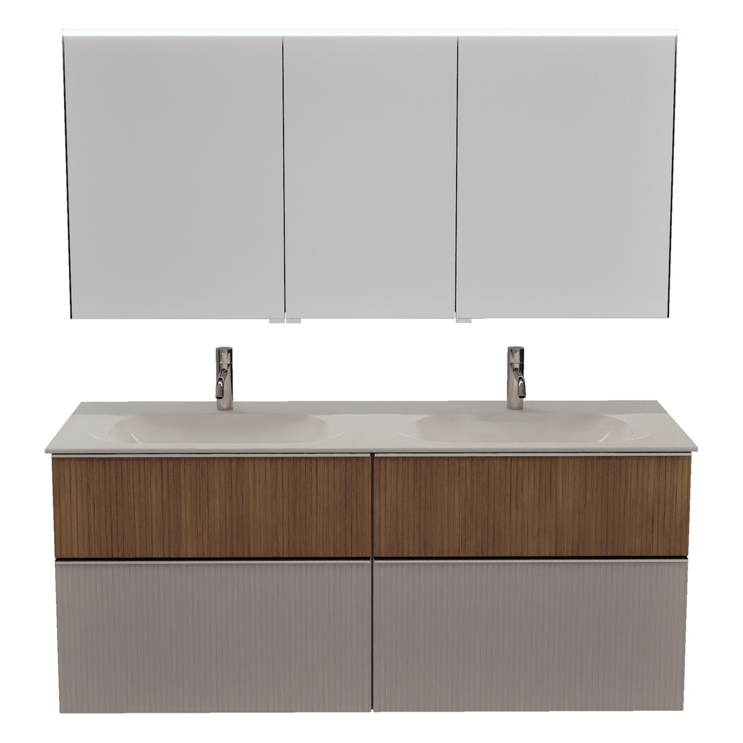 burgbad Fiumo 2.0 Badmöbelset 142 cm mit Waschtisch mit Unterschrank mit Griff G0146 und Spiegelschrank