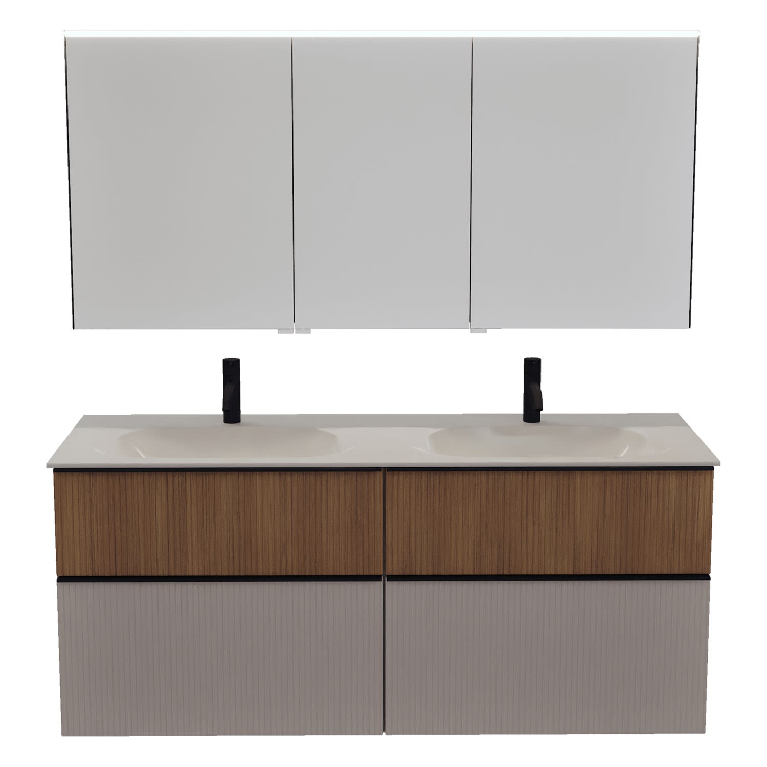 burgbad Fiumo 2.0 Badmöbelset 142 cm mit Waschtisch mit Unterschrank mit Griff G0200 und Spiegelschrank