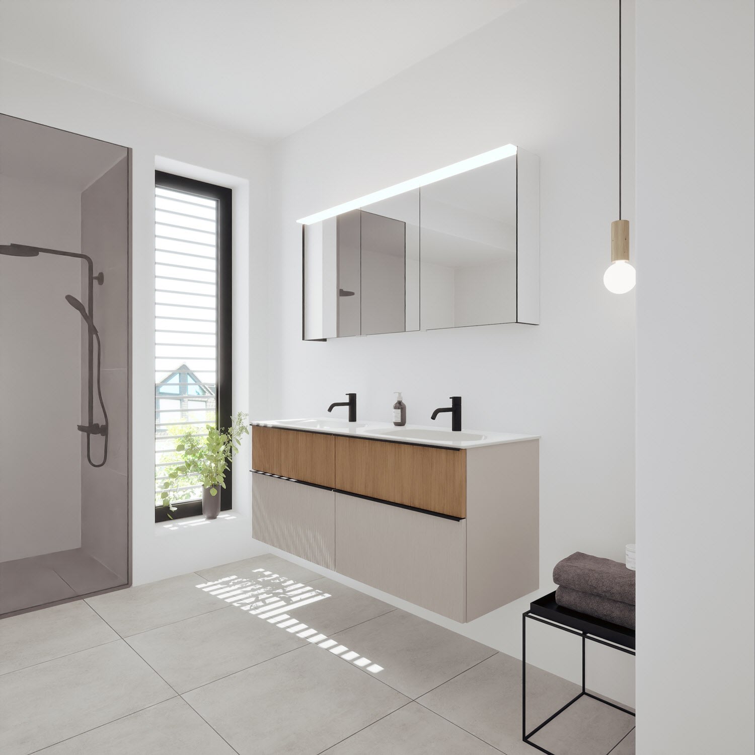 - Spiegelschrank, Waschtischunterschrank, Waschtisch,burgbad cleanFlow, Befestigung außer Stockschrauben