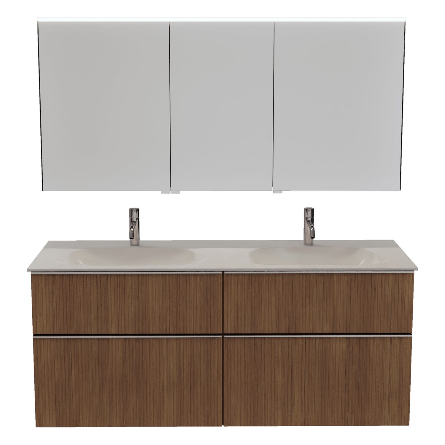 burgbad Fiumo 2.0 Badmöbelset 142 cm mit Waschtisch mit Unterschrank mit Griff G0146 und Spiegelschrank