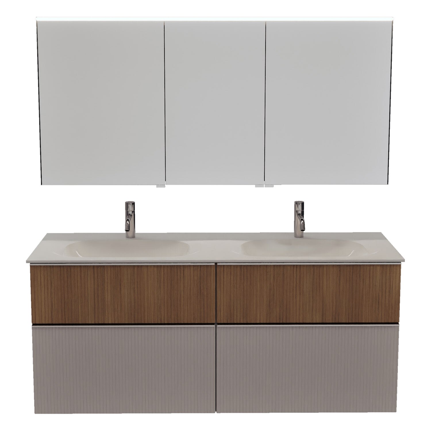 burgbad Fiumo 2.0 Badmöbelset 142 cm mit Waschtisch mit Unterschrank mit Griff G0146 und Spiegelschrank