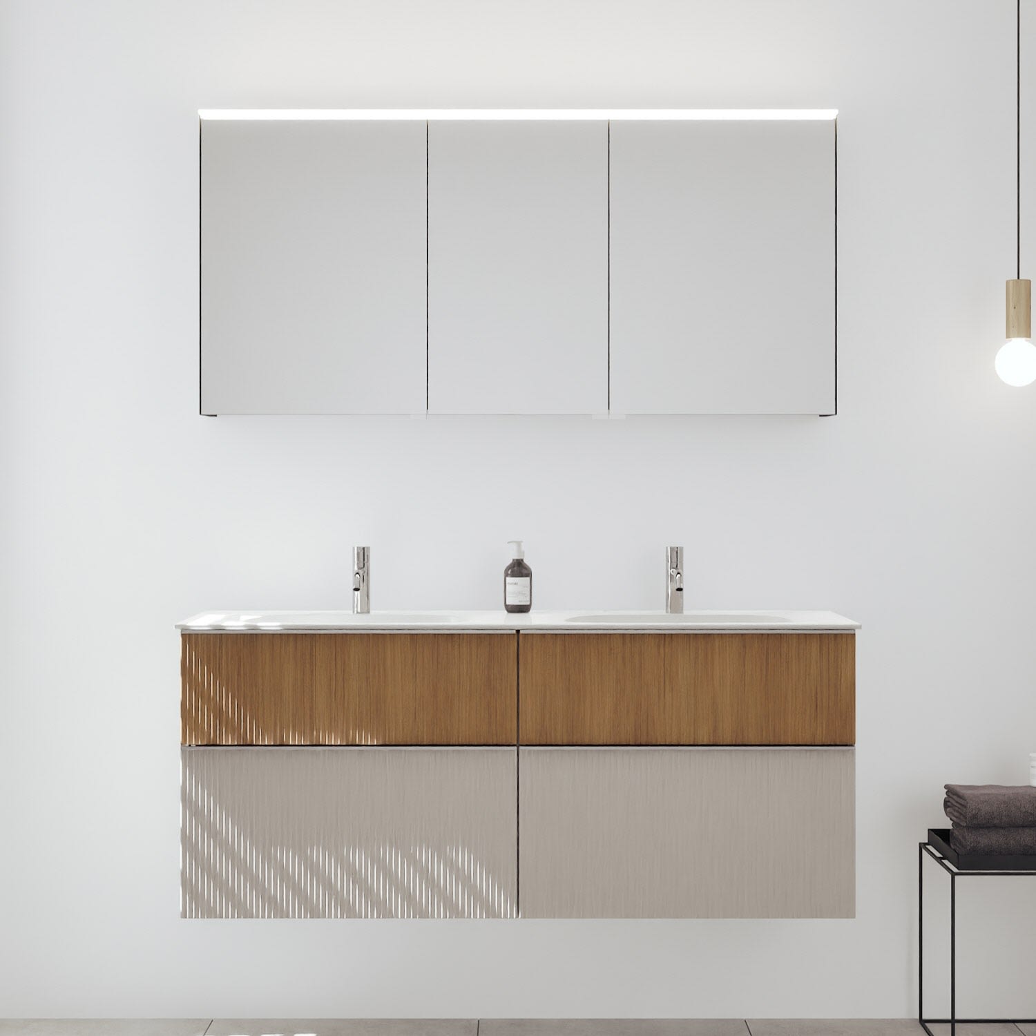 - Spiegelschrank, Waschtischunterschrank, Waschtisch,burgbad cleanFlow, Befestigung außer Stockschrauben