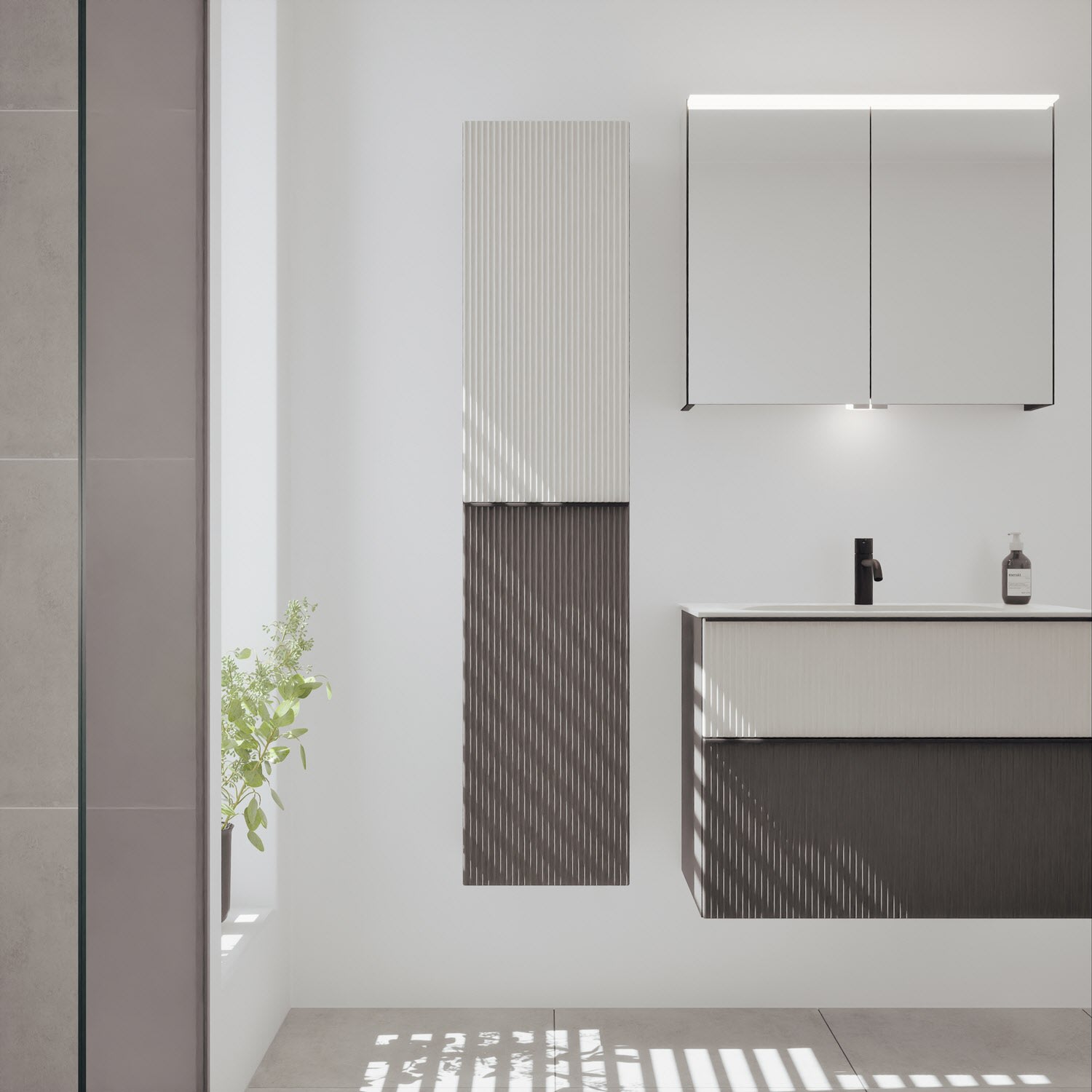 - 1 Tür oben mit vertikaler Struktur inkl. Tip-On-Technik