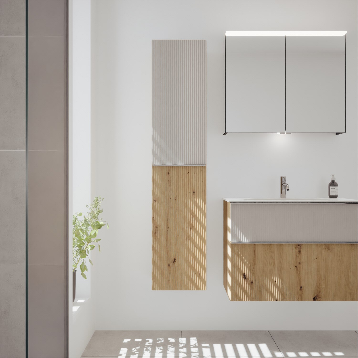 - 1 Tür oben mit vertikaler Struktur inkl. Tip-On-Technik