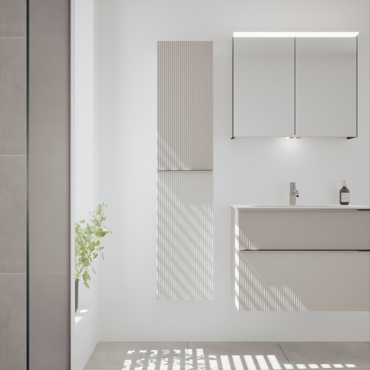 - 1 Tür oben mit vertikaler Struktur inkl. Tip-On-Technik