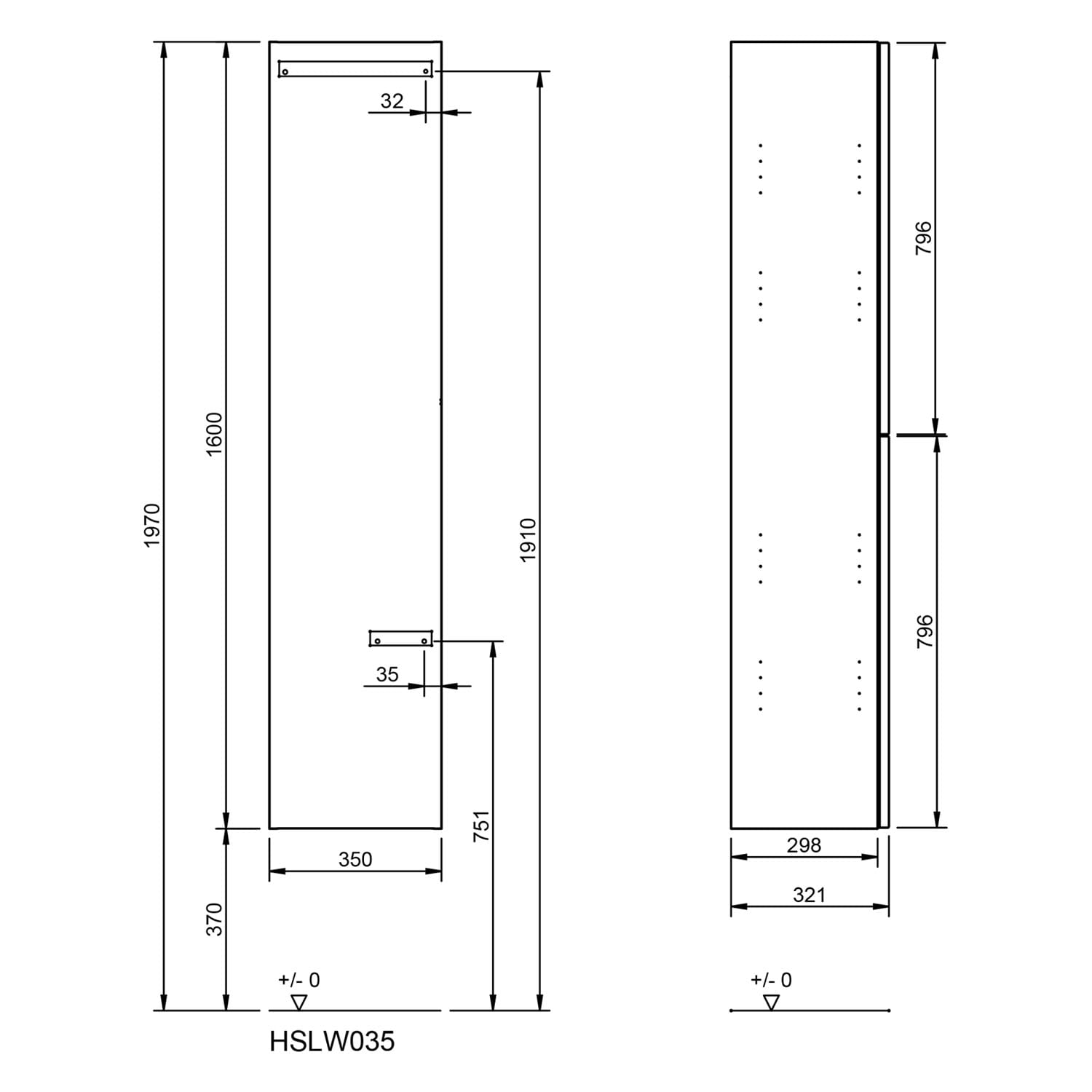 burgbad Fiumo 2.0 Hochschrank 35 x 32 x 160 cm mit Griff G0146